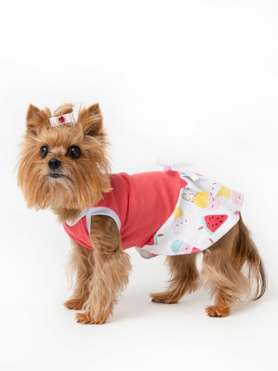 Платье трикотажное летнее, для собак и кошек «Маленькая кокетка» р. 25 (Мороженое) (длина изделия 27 см)
