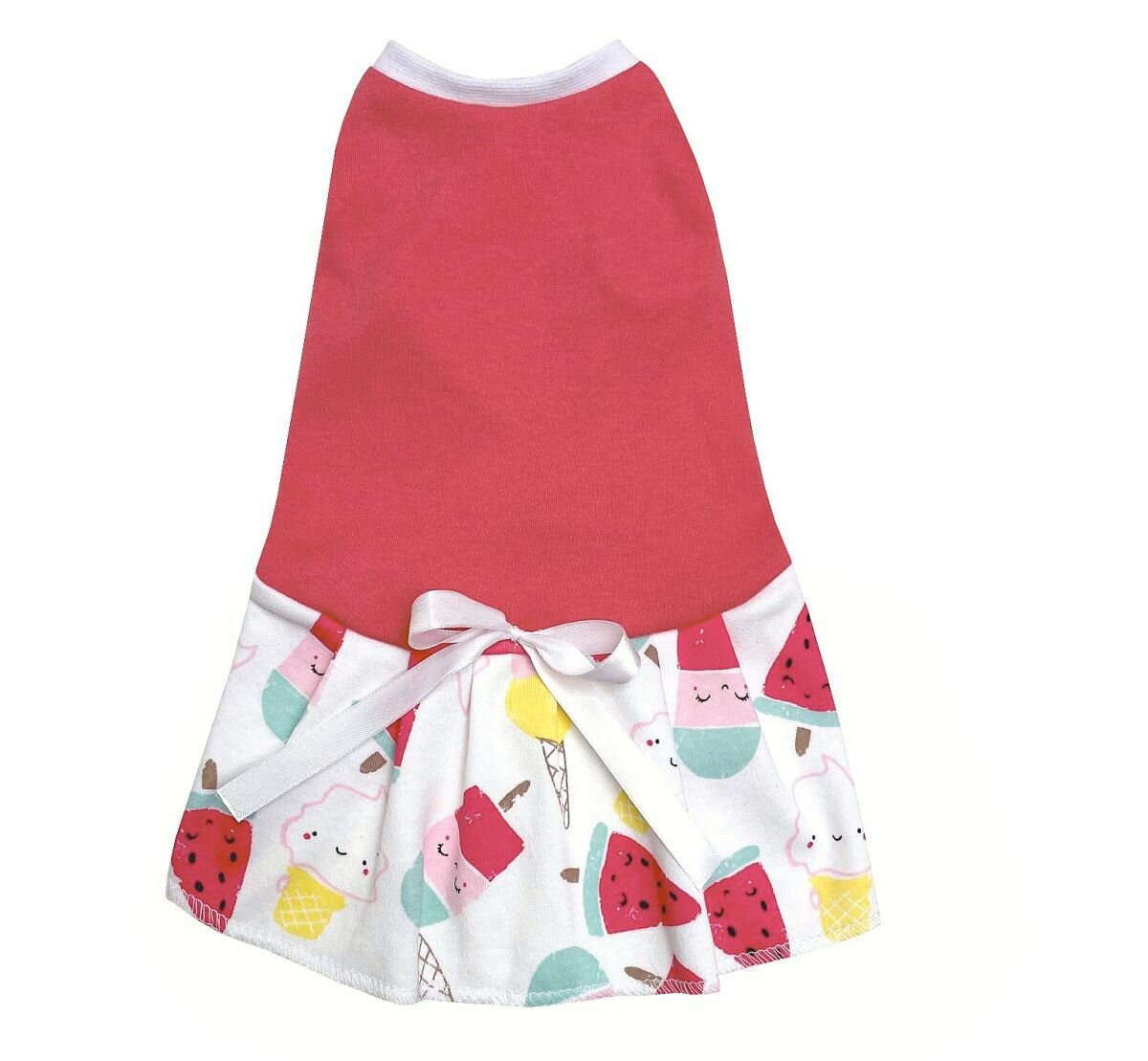 Платье трикотажное летнее, для собак и кошек «Маленькая кокетка» р. 25 (Мороженое) (длина изделия 27 см)