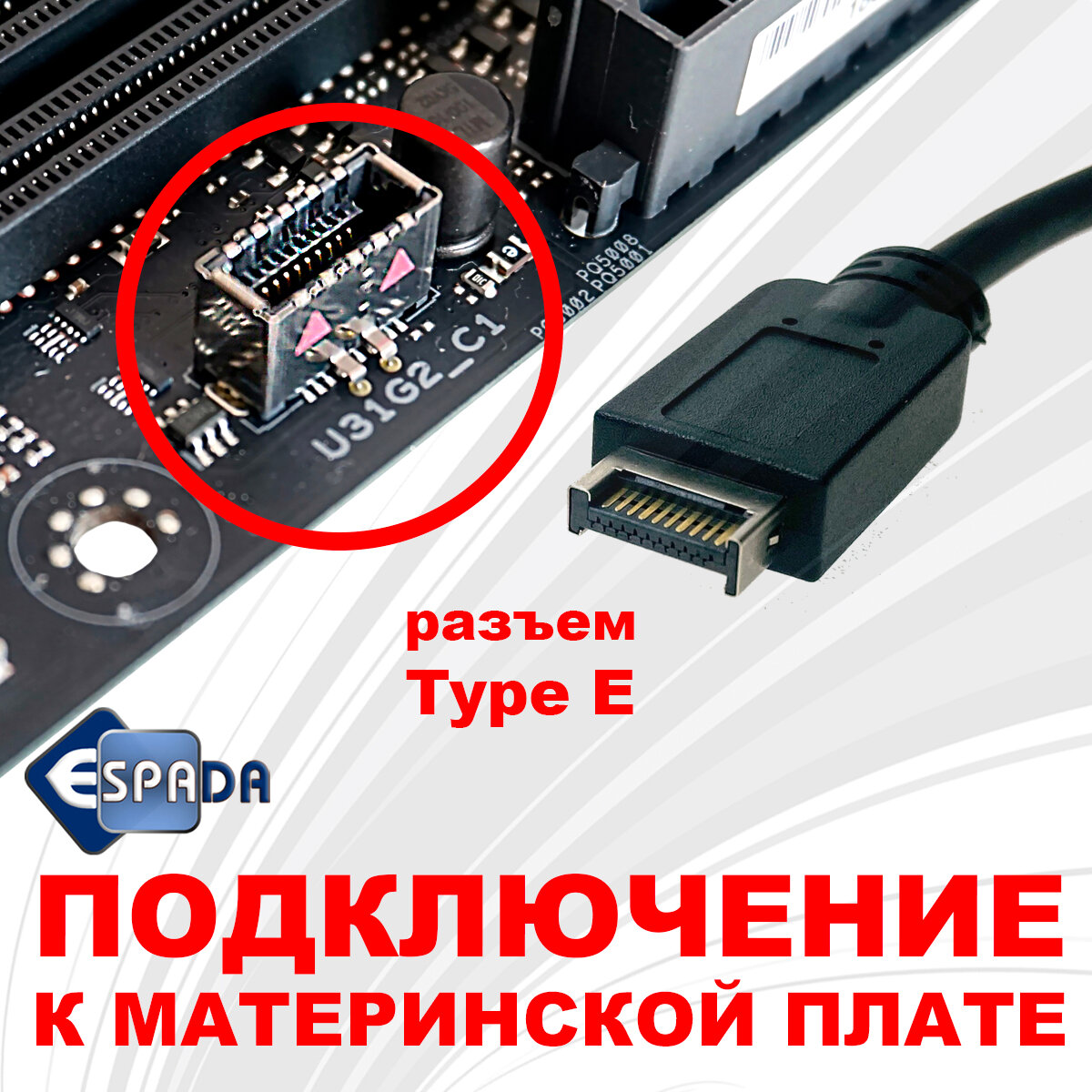 Планка в корпус USB type C 3.2 Gen 2, Espada, 10Gbps, разъем на материнской плате type E интересное: