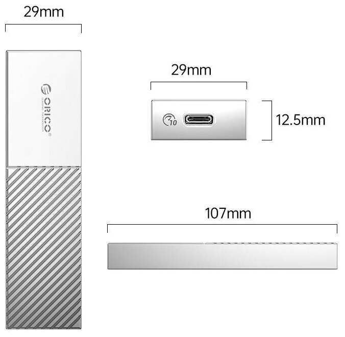 Корпус для SSD M.2 NVMe, USB3.1 Gen2 Type-C (10 Гбит/с), Orico M206C3, серый (ORICO-M206C3-G2-GY-BP) интересное: