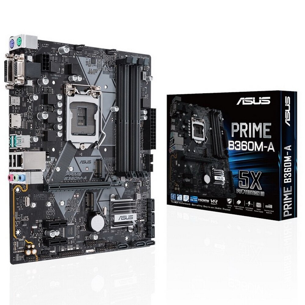 Купить LGA1151v2 материнская плата Asus PRIME (B360M-A) 4x DDR4-2666Мгц, mATX