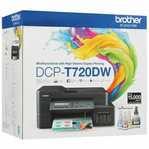 Купить МФУ струйный Brother DCP-T720DW, СНПЧ, с Wi-fi, стартовый набор картриджей, кабель USB