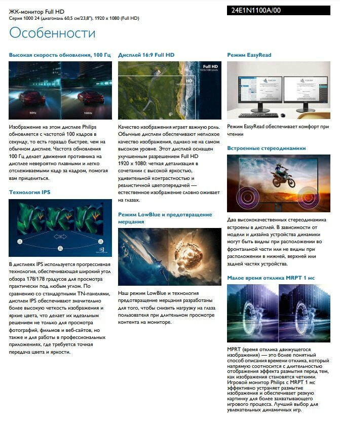 Монитор 23.8" Philips 24E1N1100A Black интересное: