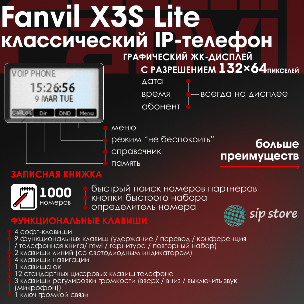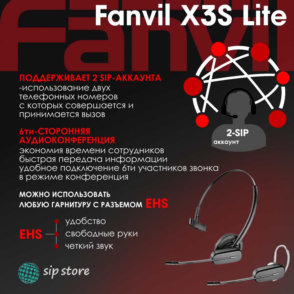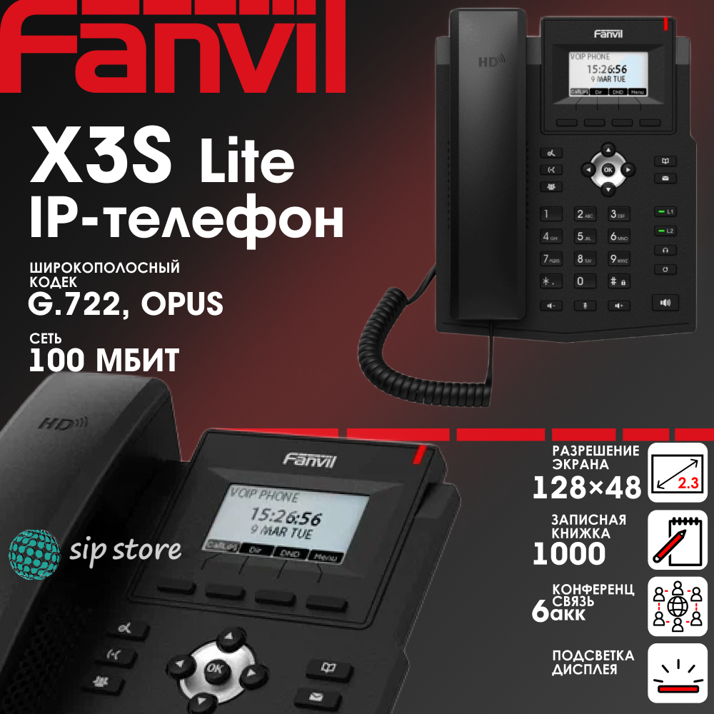 IP-телефон Fanvil X3S Lite, 2 SIP аккаунта, монохромный 2,3 дисплей 132x64 с подсветкой, конференция на 6 абонентов, поддержка EHS. интересное: