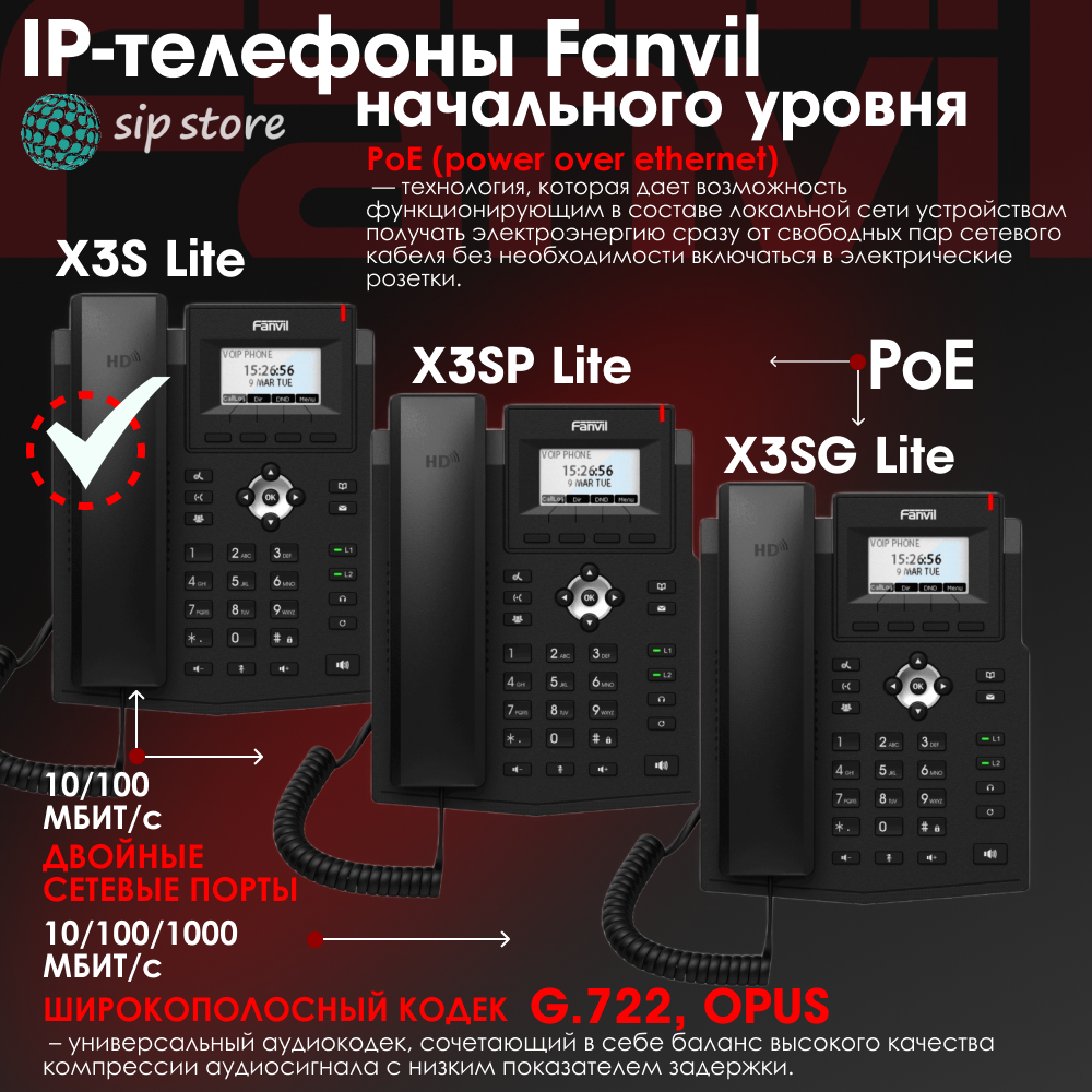 Ниже Вы можете прочитать отзывы на IP-телефон Fanvil X3S Lite, 2 SIP аккаунта, монохромный 2,3 дисплей 132x64 с подсветкой, конференция на 6 абонентов, поддержка EHS., ознакомится с подробными характеристиками, посмотреть интересные обзоры и фотографии на IP-телефон Fanvil X3S Lite, 2 SIP аккаунта, монохромный 2,3 дисплей 132x64 с подсветкой, конференция на 6 абонентов, поддержка EHS..