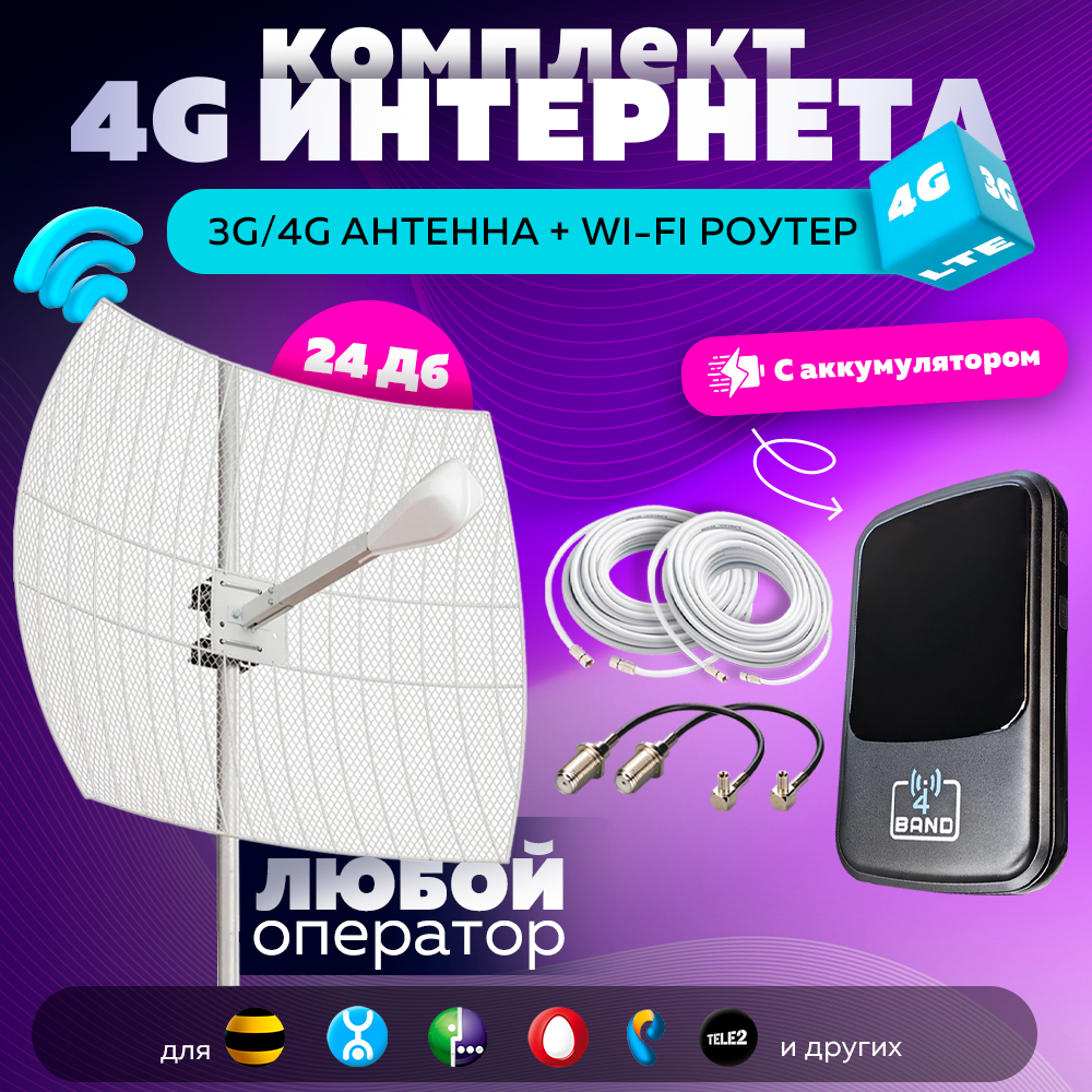 Комплект Интернета Miglink-24 4G WiFi Роутер M4 BAND + LTE MiMO Антенна подходит Любой Безлимитный Интернет Тариф и Любая Сим карта интересное: