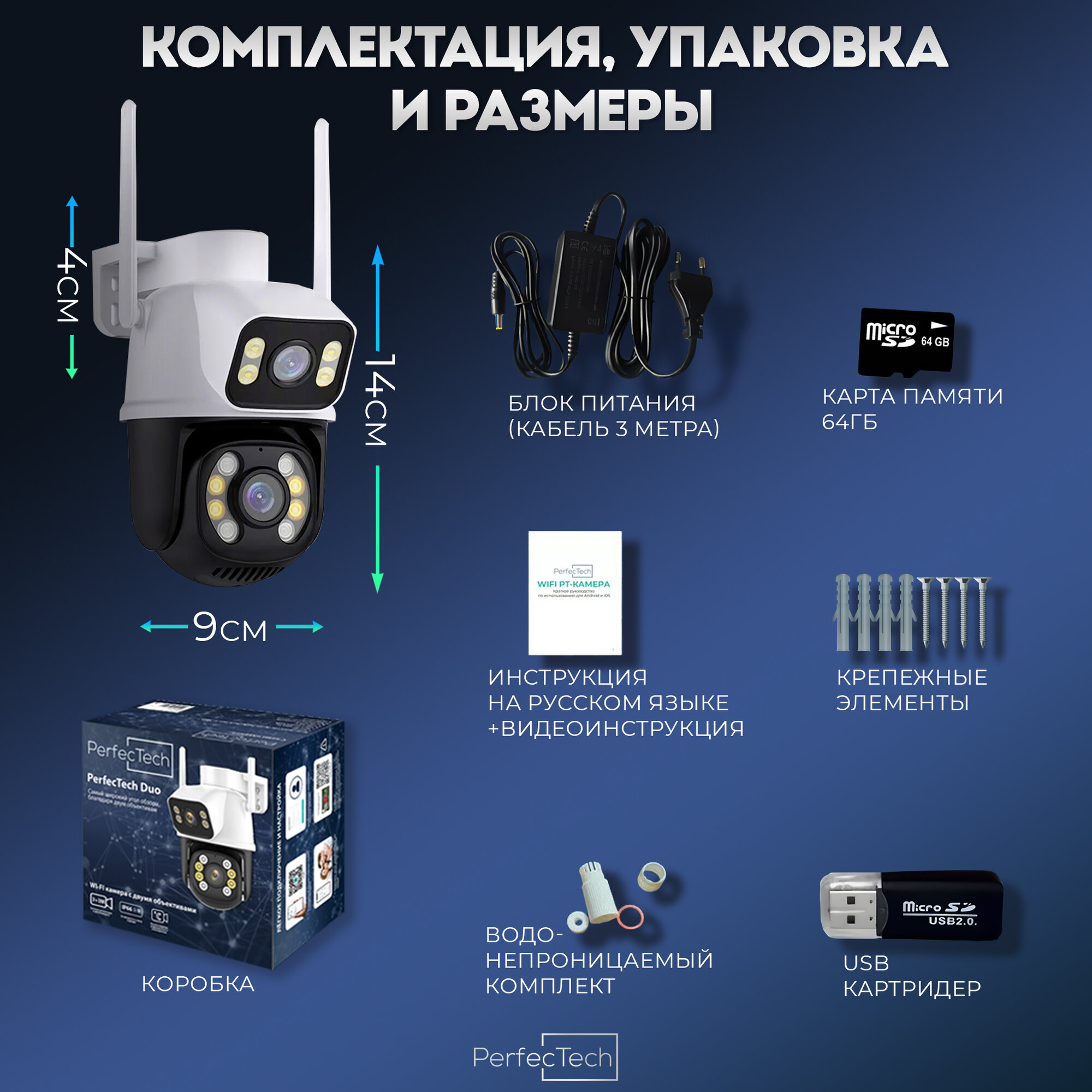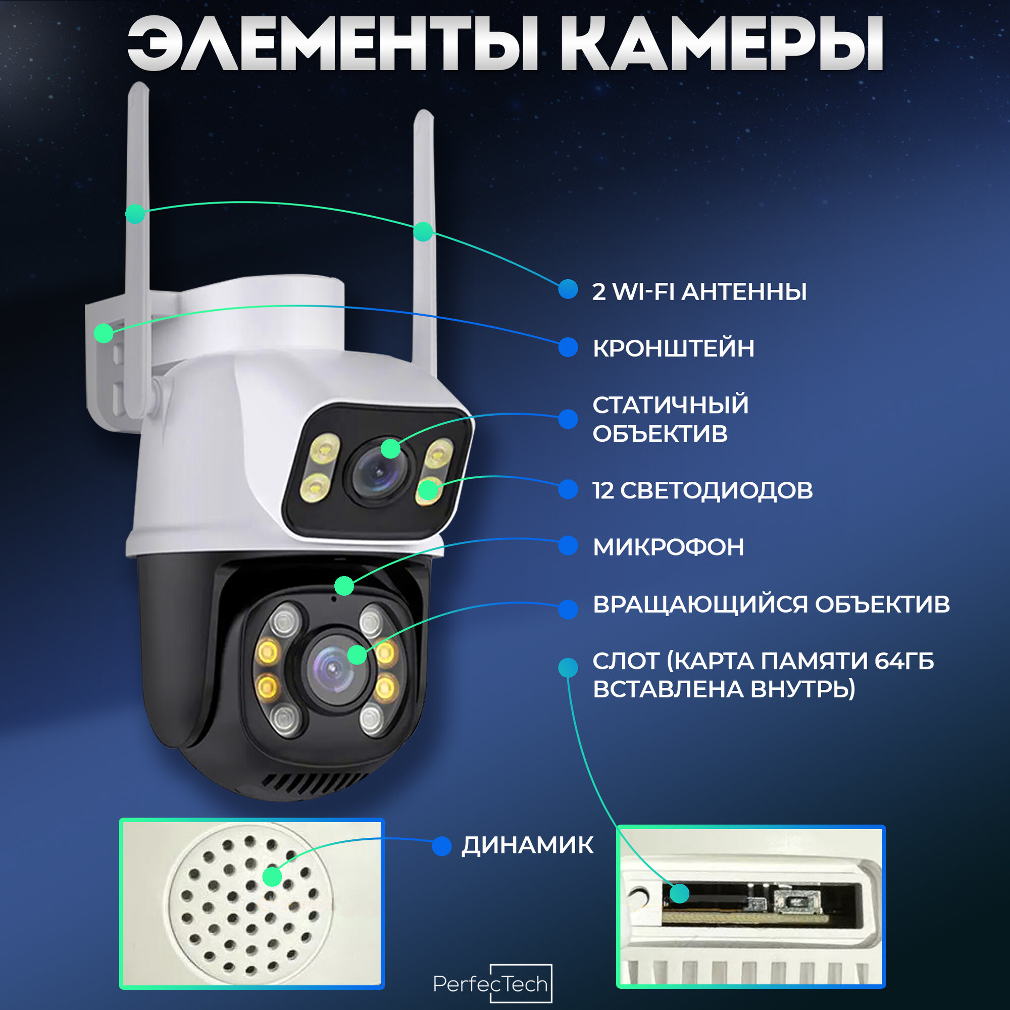Камера видеонаблюдения уличная двойная Wi-Fi + карта 64ГБ + кабель питания 3м интересное: