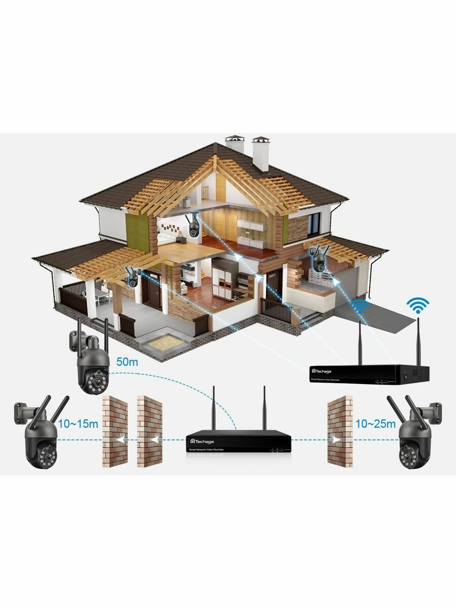 Techage 6-камерный комплект WIFI-камеры с разрешением 3 мегапикселя интересное: