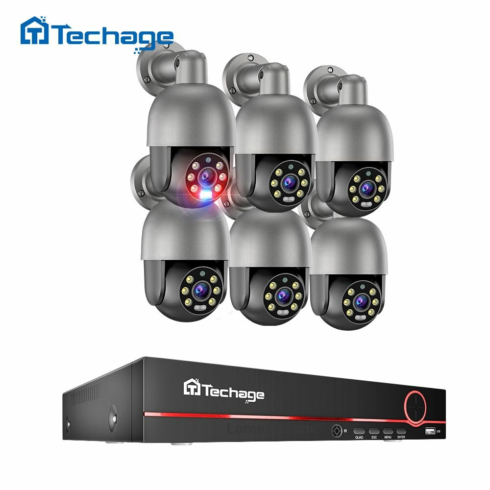 Купить Готовый комплект видеонаблюдения POE 6 камеры 5Мп Techageкамеры Не требуется питание, Кабельный интерфейс подключи и работай
