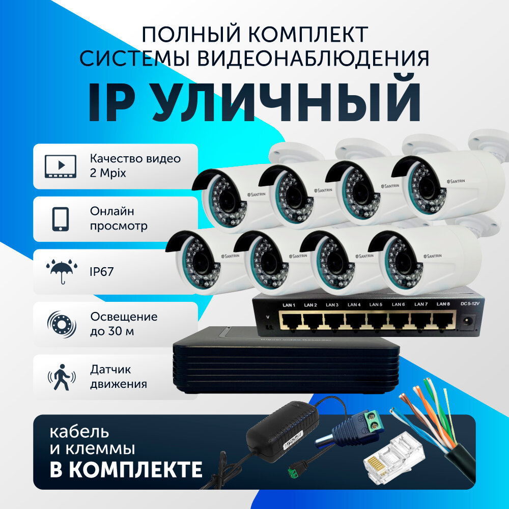 Купить Комплект видеонаблюдения цифровой, готовый комплект IP 8 камер уличные FullHD 2MP