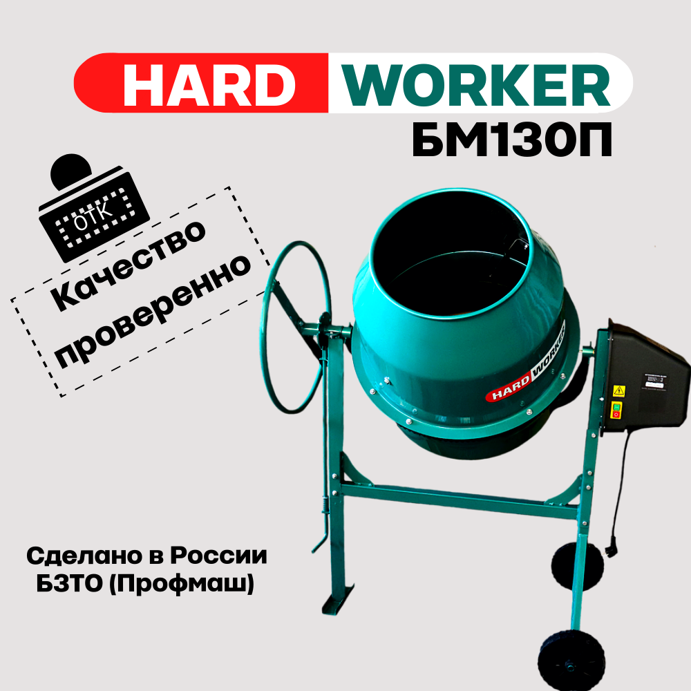 Бетоносмеситель/бетономешалка HARD WORKER БМ130П полиамидный венец, объем 130 литров, мощность 550 Вт интересное: