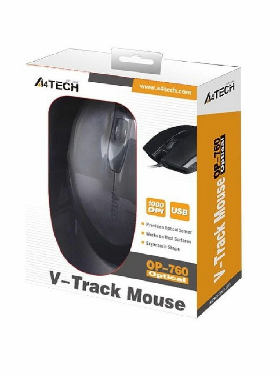 Мышь A4Tech OP-760 черная, 1000dpi, USB, 2 кнопки