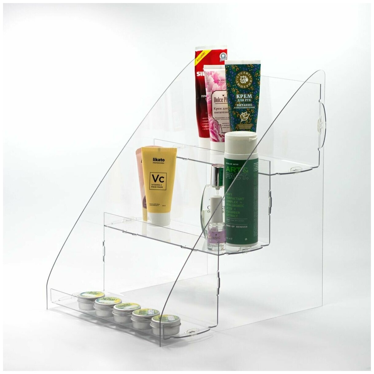 Горка из оргстекла 3-ёх ступенчатая 275х313х350 мм, толщина 1,5 мм, комплект 2 шт. / Горка для товаров / Подставка из оргстекла интересное: