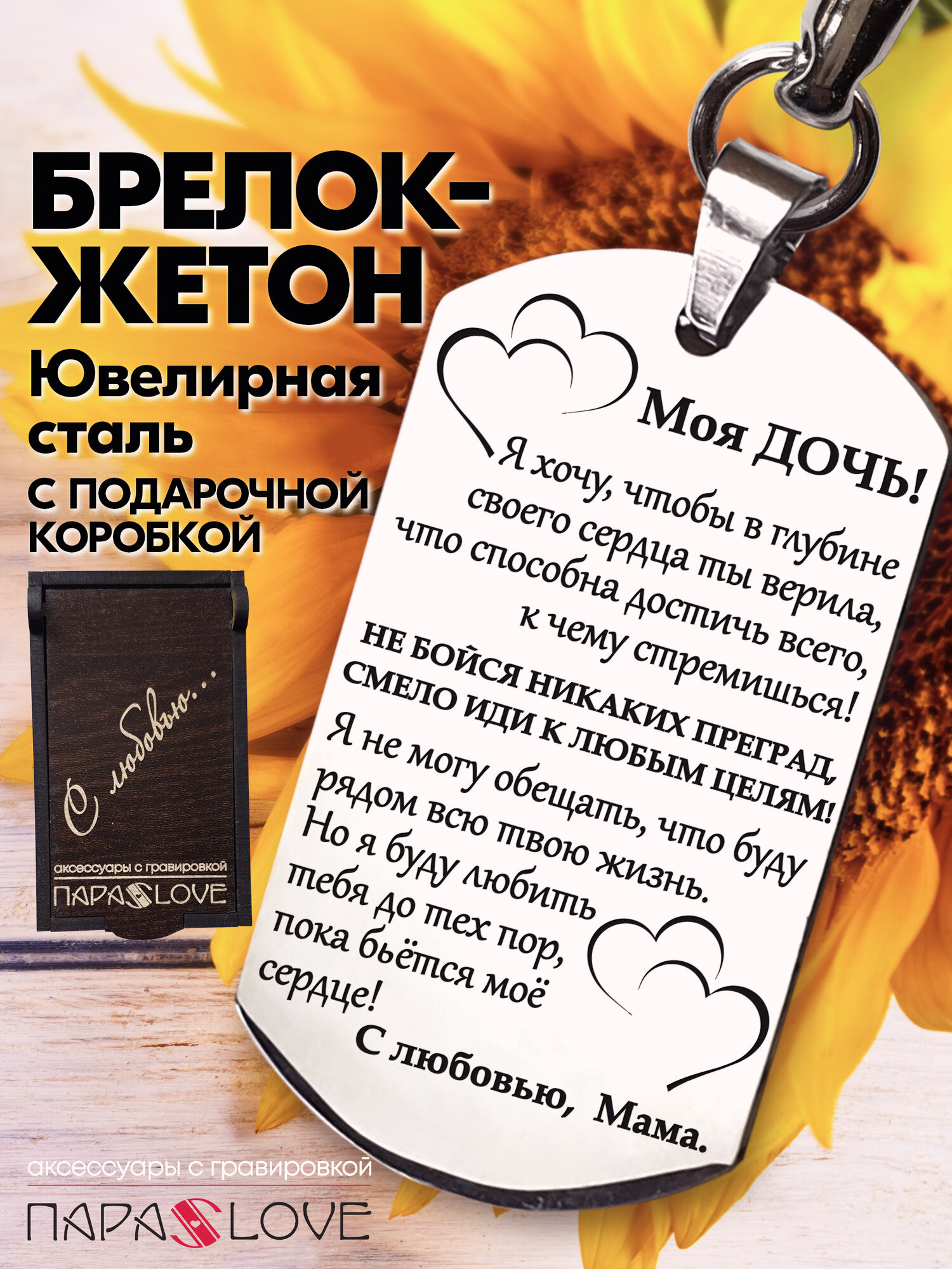 СохранитьБрелок для ключей "Моя дочь!" с лазерной гравировкой в подарочной коробке. Жетон на сумку, рюкзак, ключи авто и дома интересное: