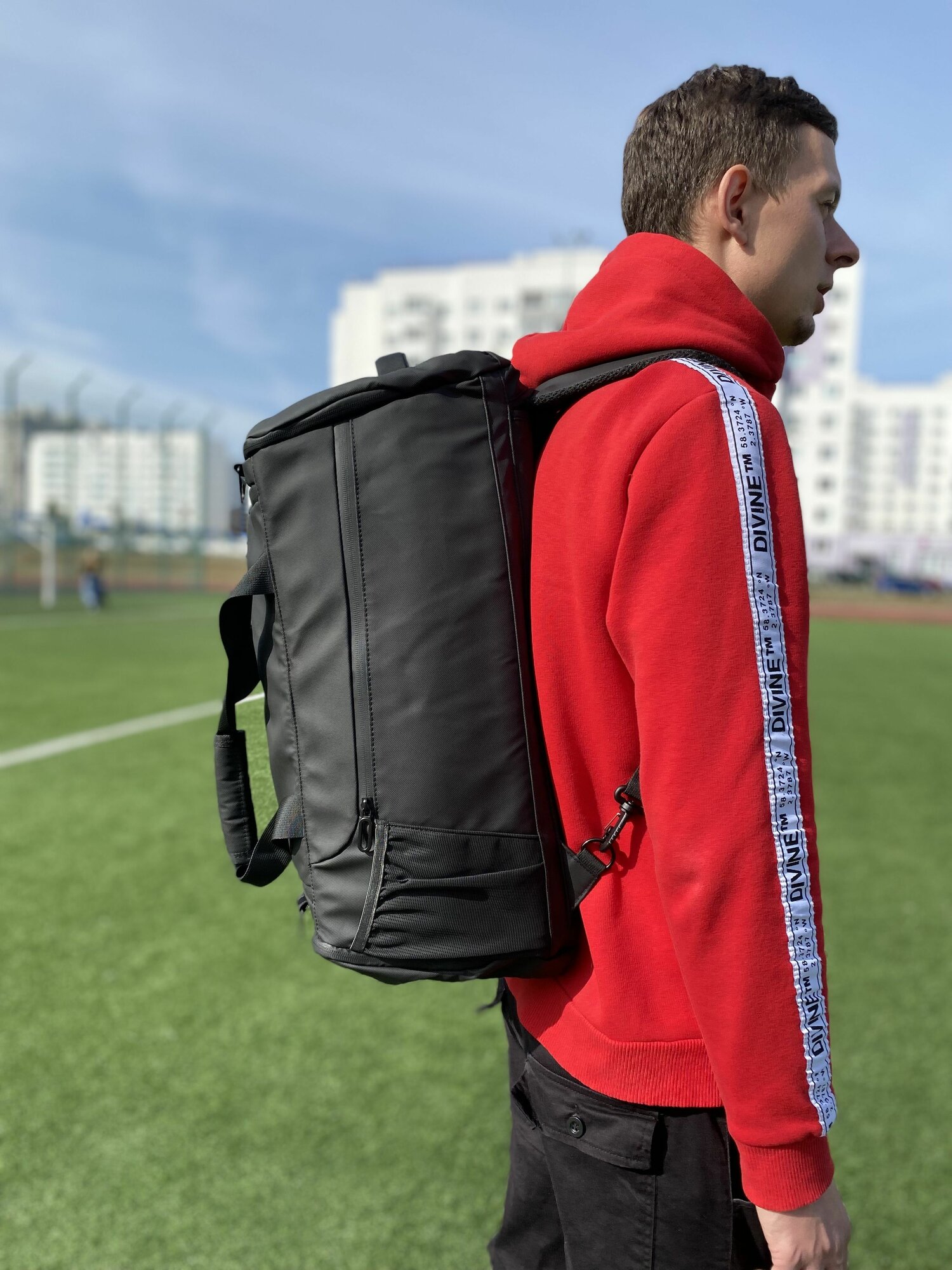 Спортивная сумка-рюкзак мужская трансформер водонепроницаемая. Размер 60*25*24 интересное: