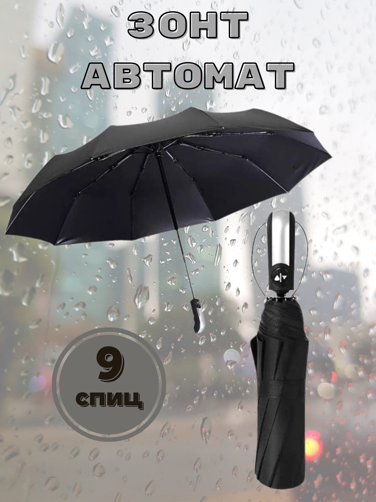Зонт мужской автомат / зонт женский антиветер 9 спиц