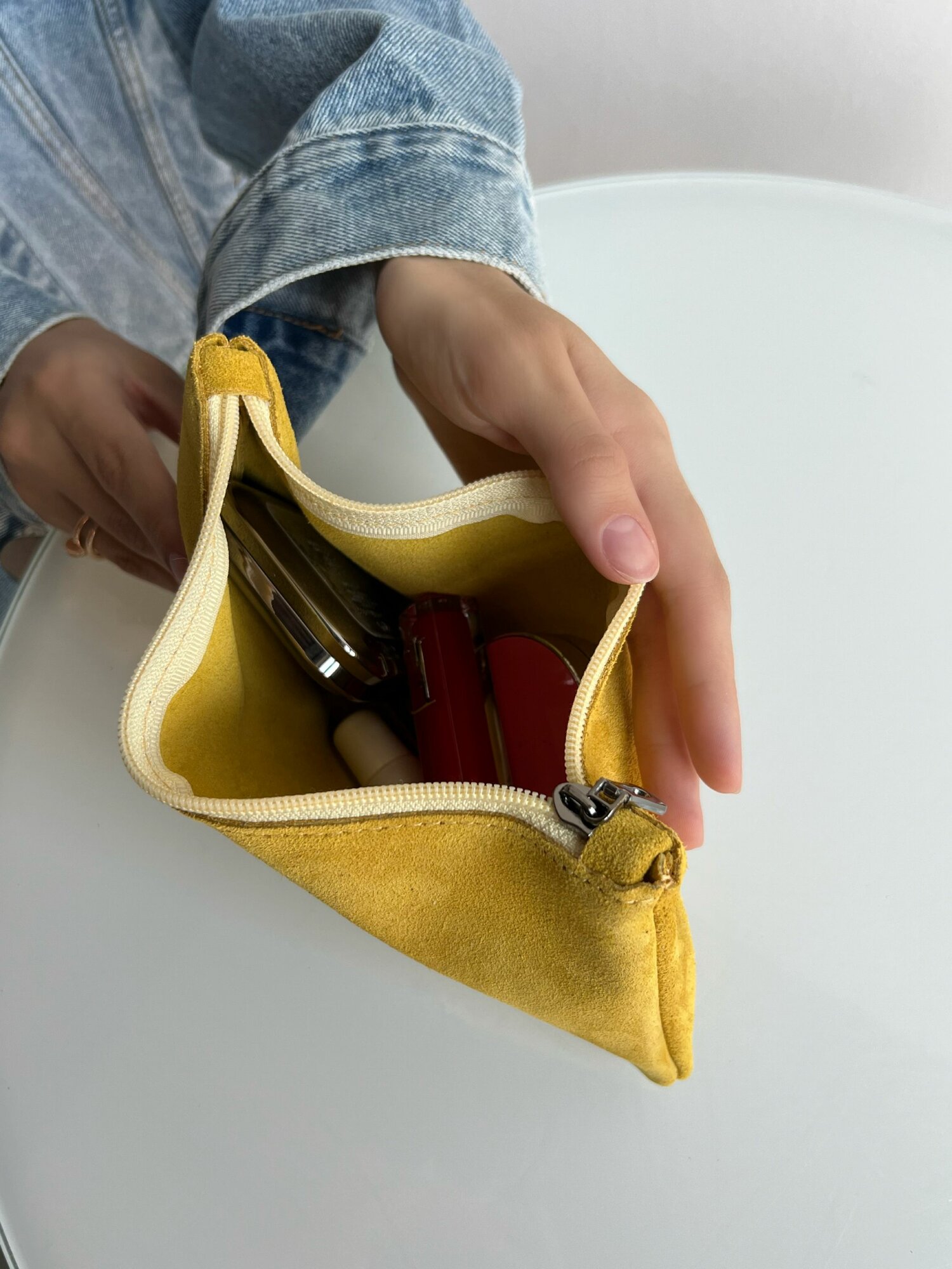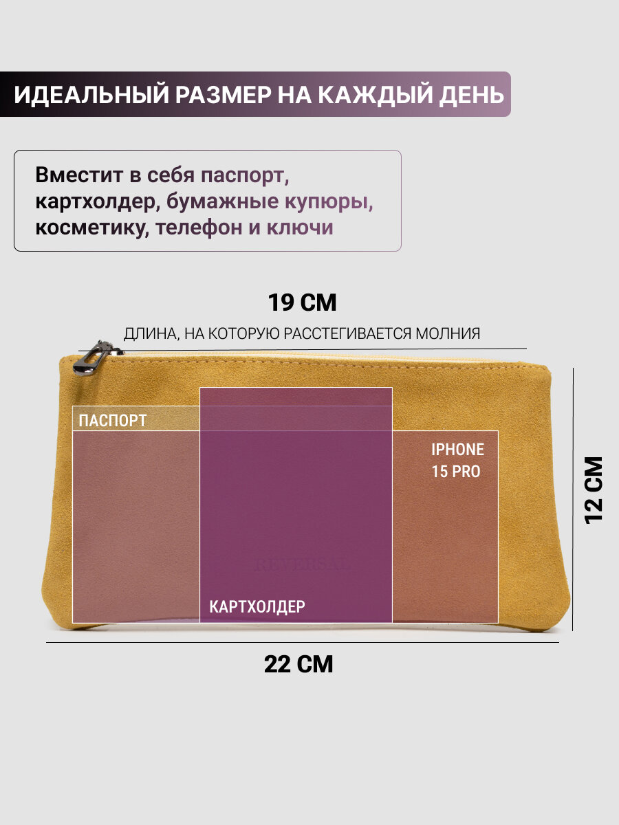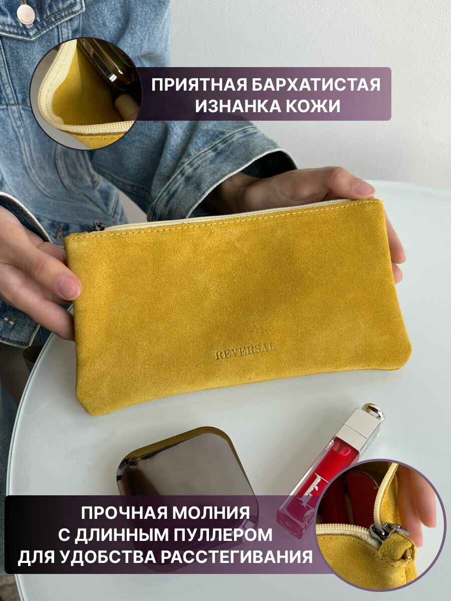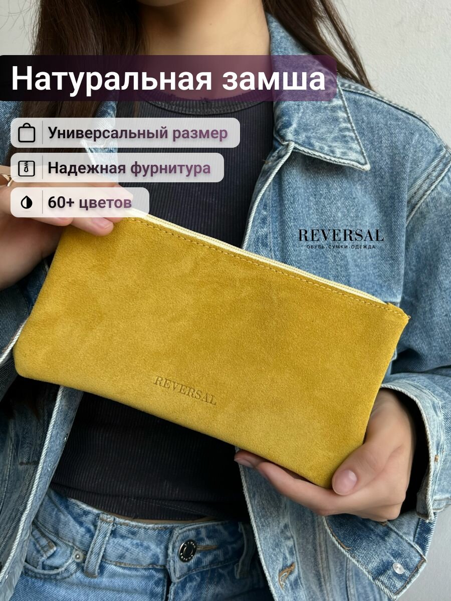 Косметичка натуральная замша на молнии плоская ,Reversal, 8856R_Манго-замша интересное: