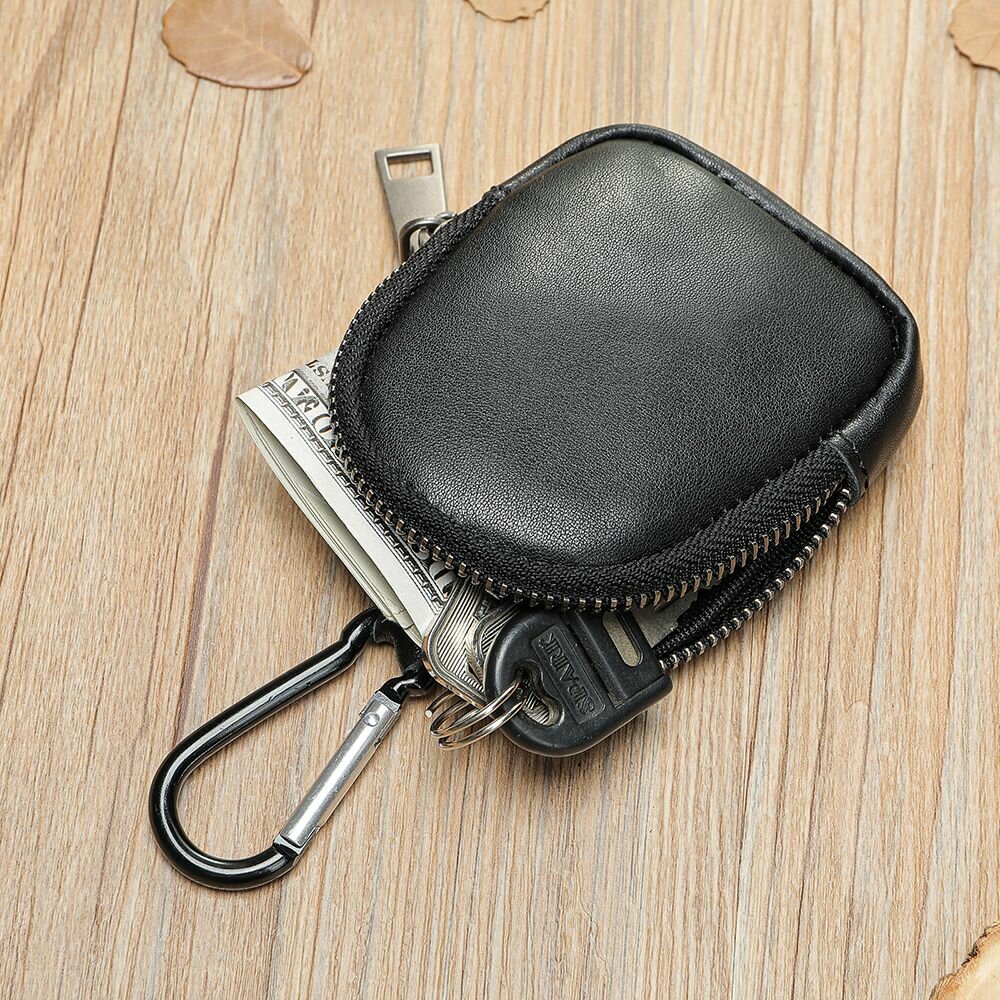 Кожаная мини монетница с карабином