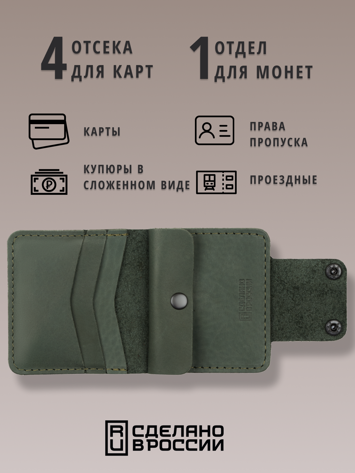 Купить Кожаный кошелек для карт, картхолдер с монетницей на кнопках, зеленый