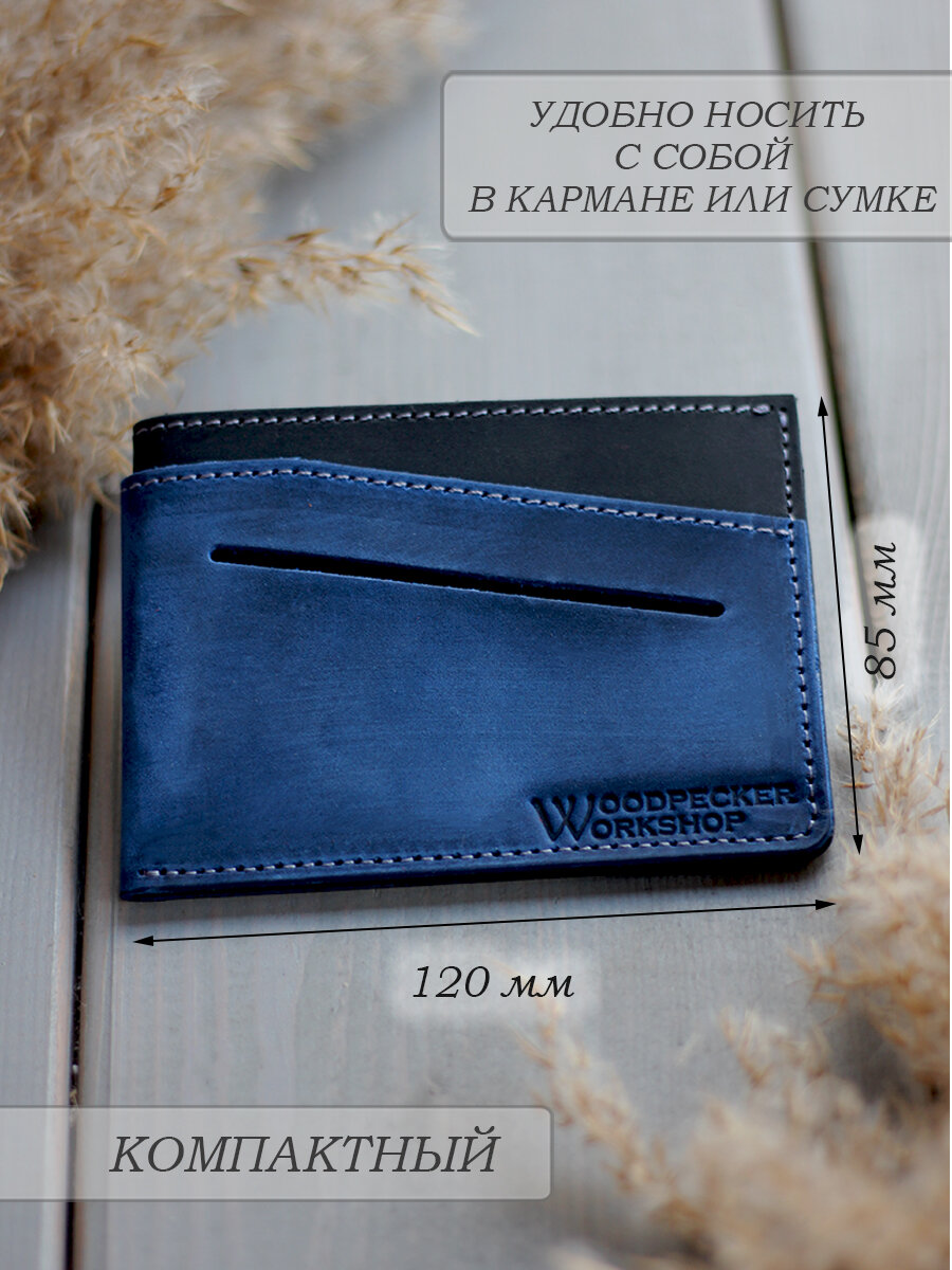 Картхолдер "Little Rock" из натуральной кожи от бренда "Woodpecker Workshop", синий интересное: