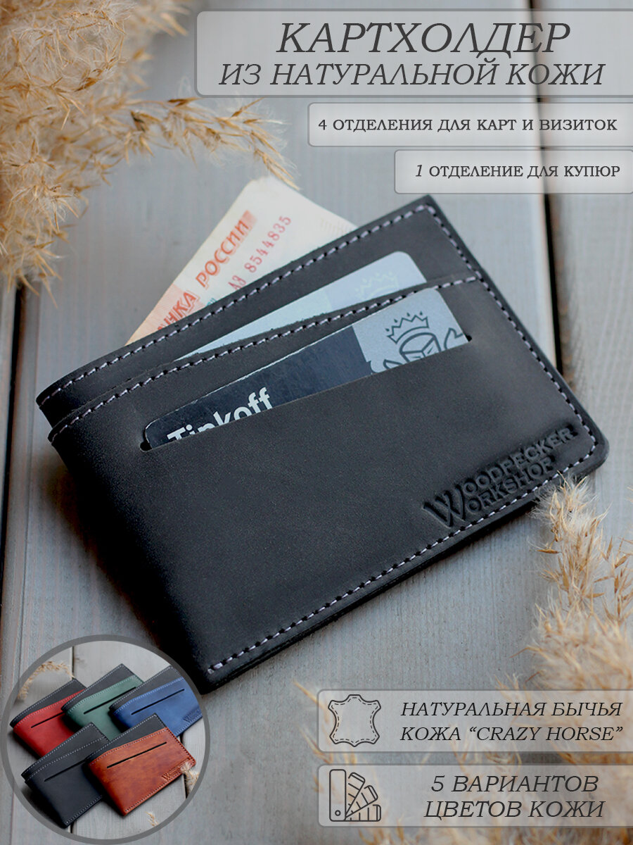 Картхолдер "Little Rock" из натуральной кожи от бренда "Woodpecker Workshop", черный интересное: