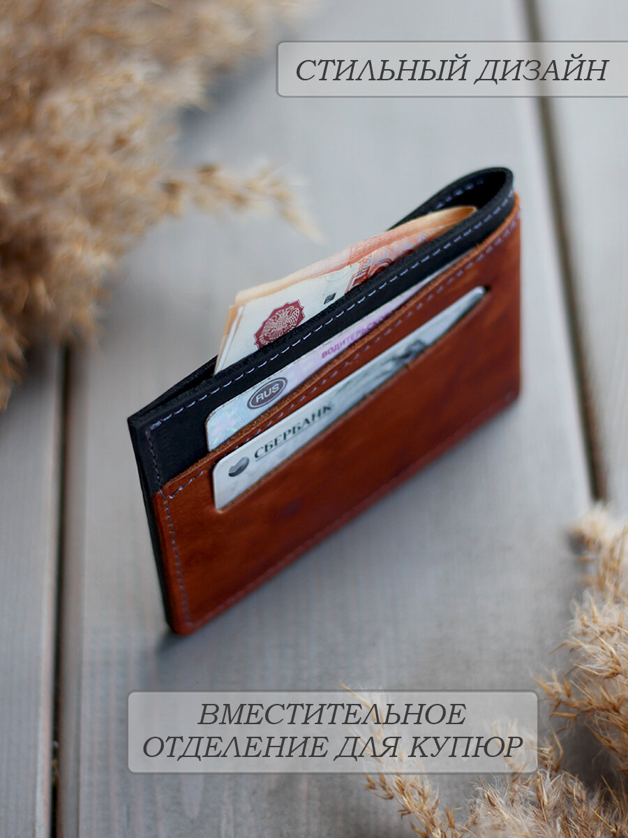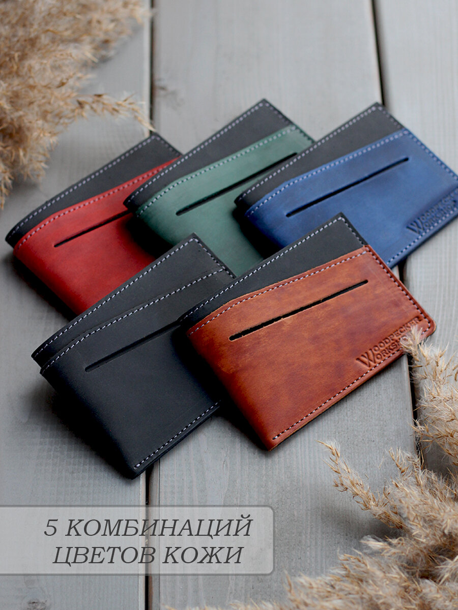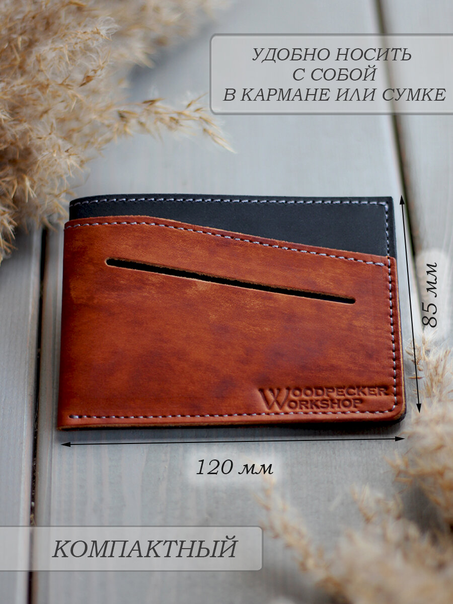 Картхолдер "Little Rock" из натуральной кожи от бренда "Woodpecker Workshop", черный