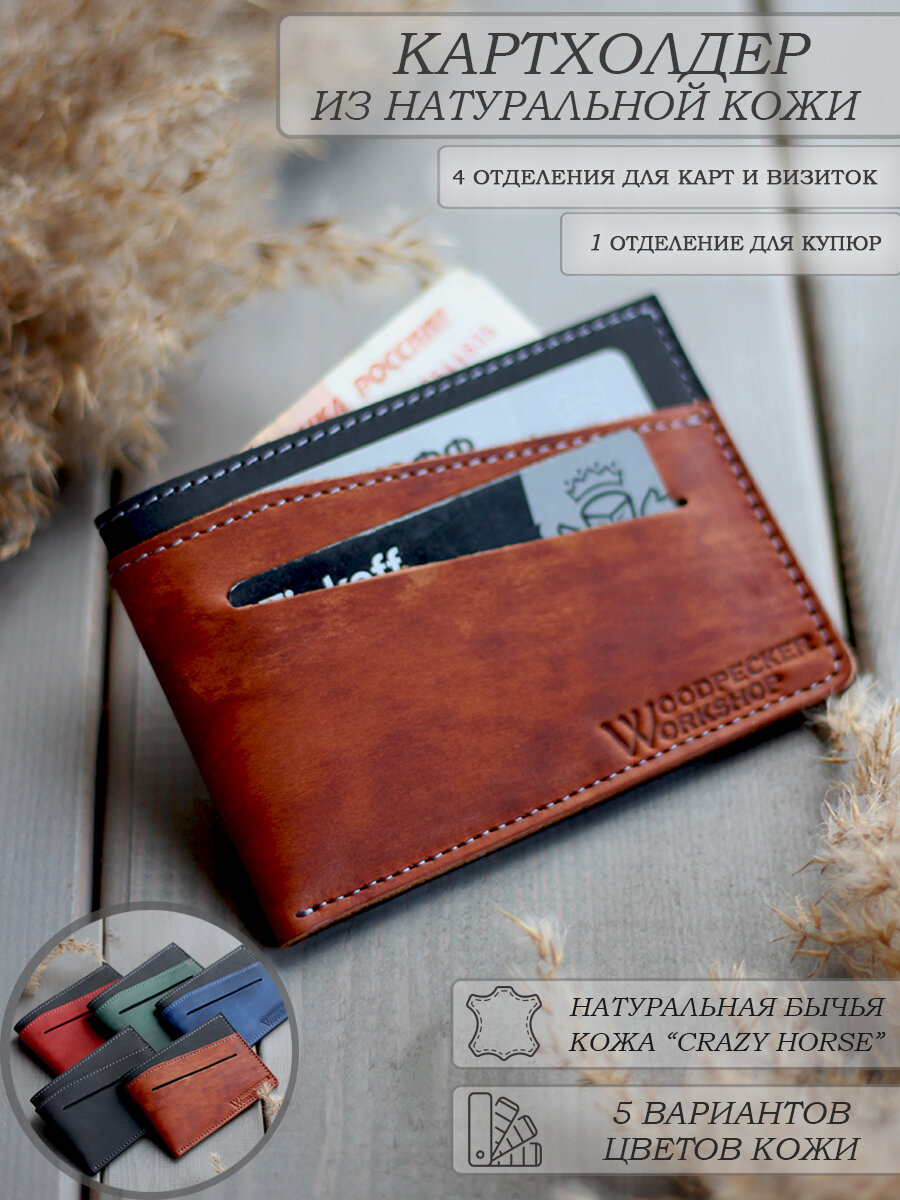 Купить Картхолдер "Little Rock" из натуральной кожи от бренда "Woodpecker Workshop", рыжий