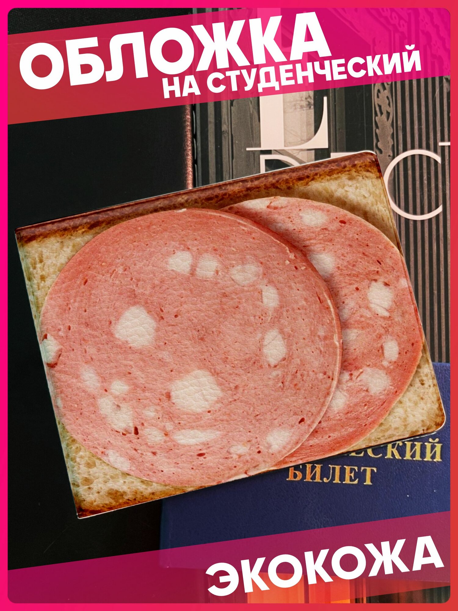 Купить Обложка на студенческий с принтом мем бутерброд с колбасой