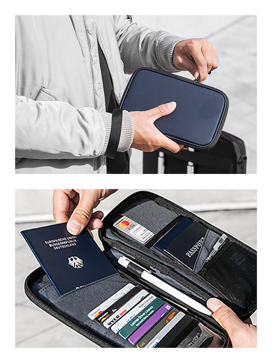 Дорожный кошелек с RFID-защитой / дорожный органайзер для документов, синий интересное: