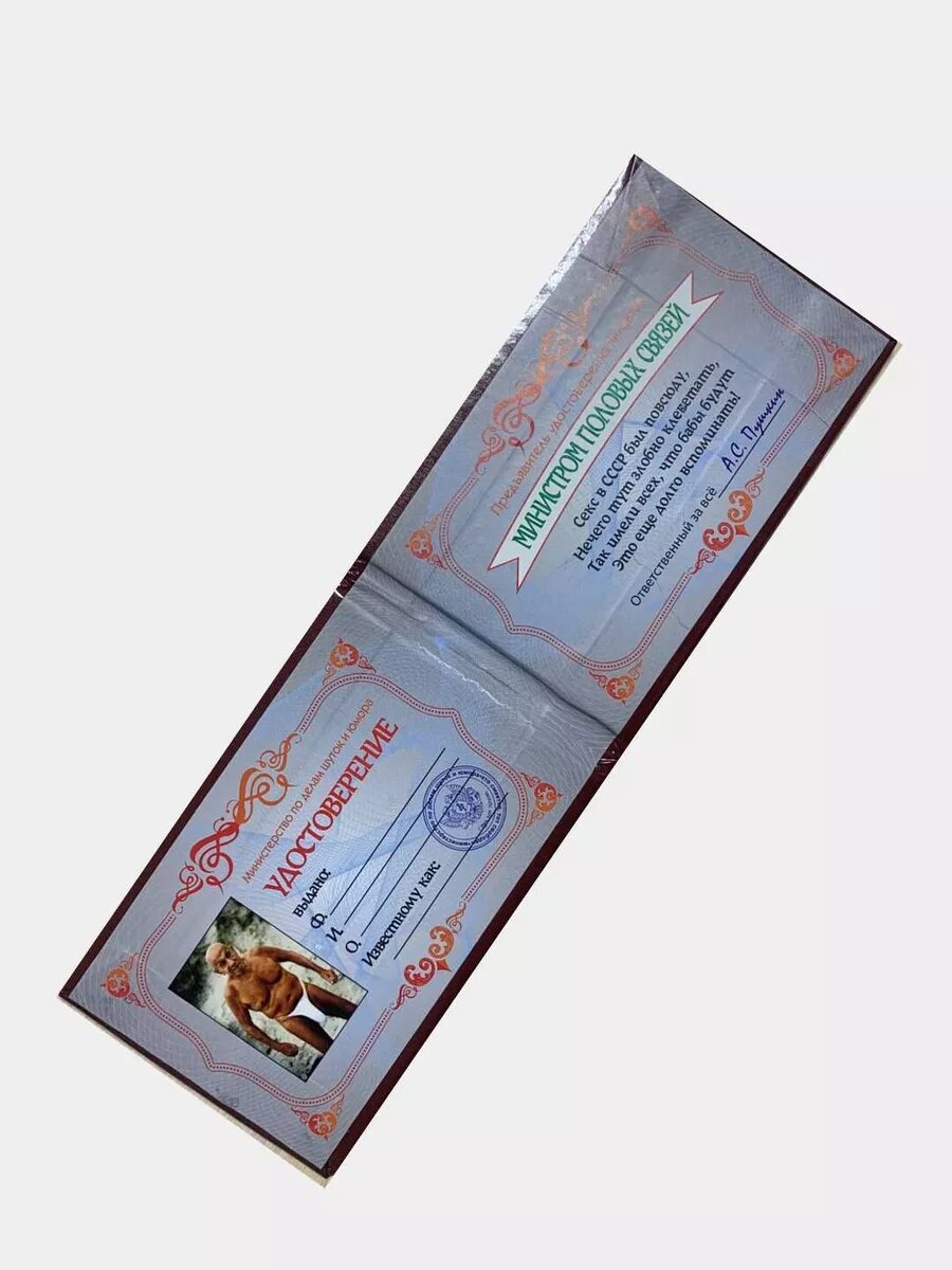 Ниже Вы можете прочитать отзывы на Шуточное удостоверение "Министр половых связей", ознакомится с подробными характеристиками, посмотреть интересные обзоры и фотографии на Шуточное удостоверение "Министр половых связей".