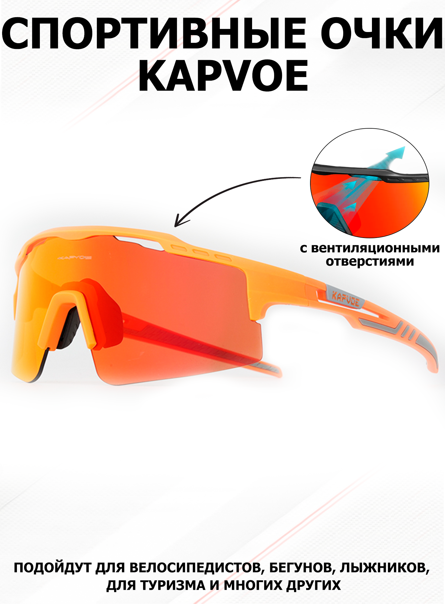 Купить Очки спортивные солнцезащитные Kapvoe с защитой от UV400 с защитой от UV400, цвет оранжевый, серый с оранжевой линзой