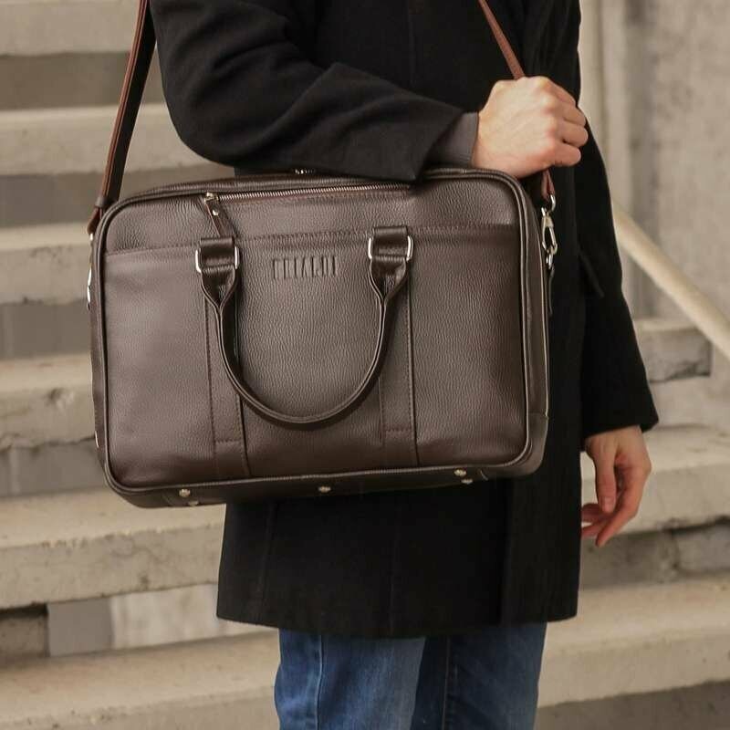 Функциональная мужская деловая сумка BRIALDI Overton (Эвертон) relief brown интересное: