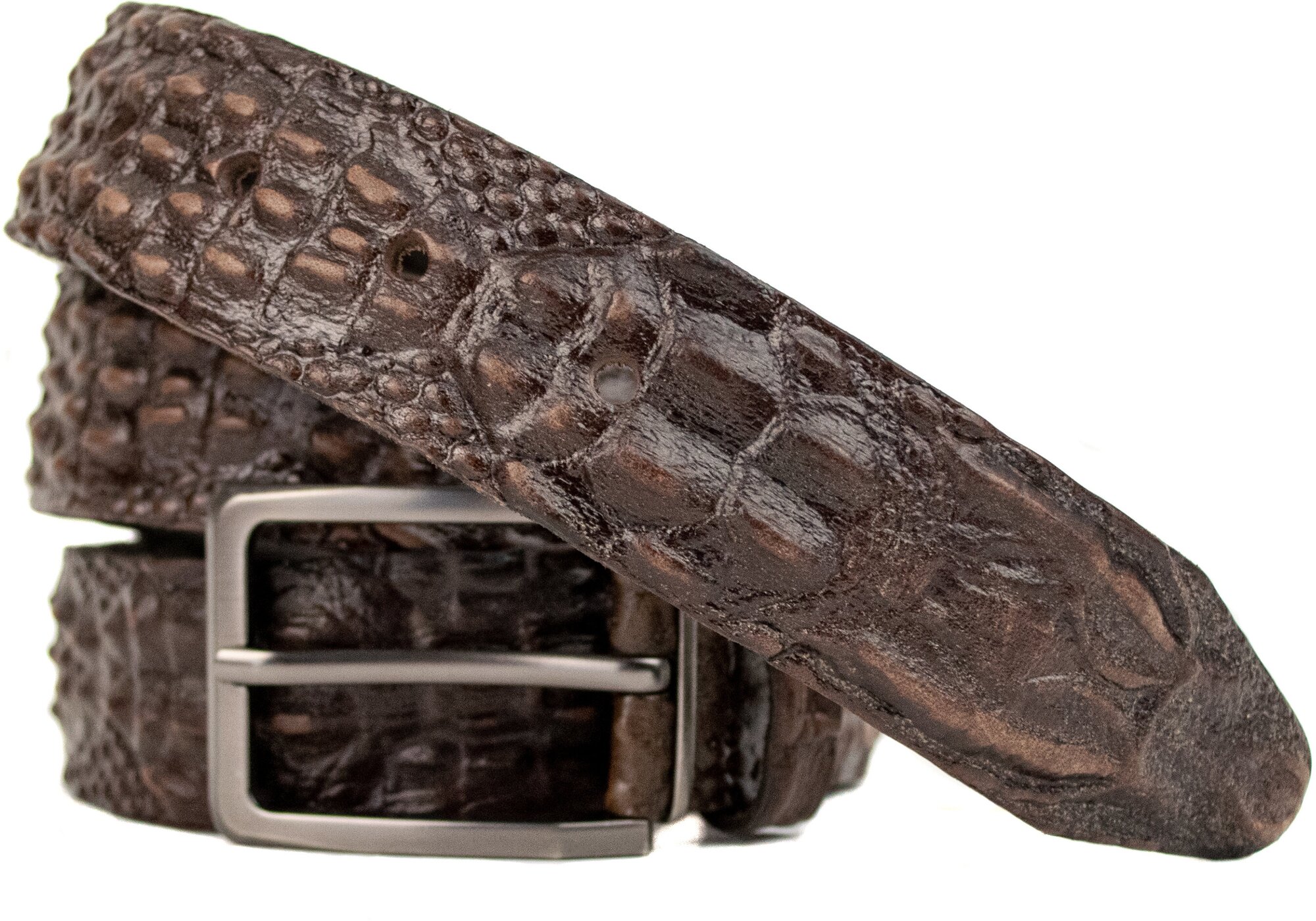 Кожаный ремень коричневый с тиснением 35мм интересное: