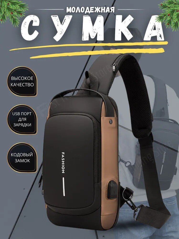 Сумка мужская через плечо спортивная кросс-боди, Черно-золотая интересное: