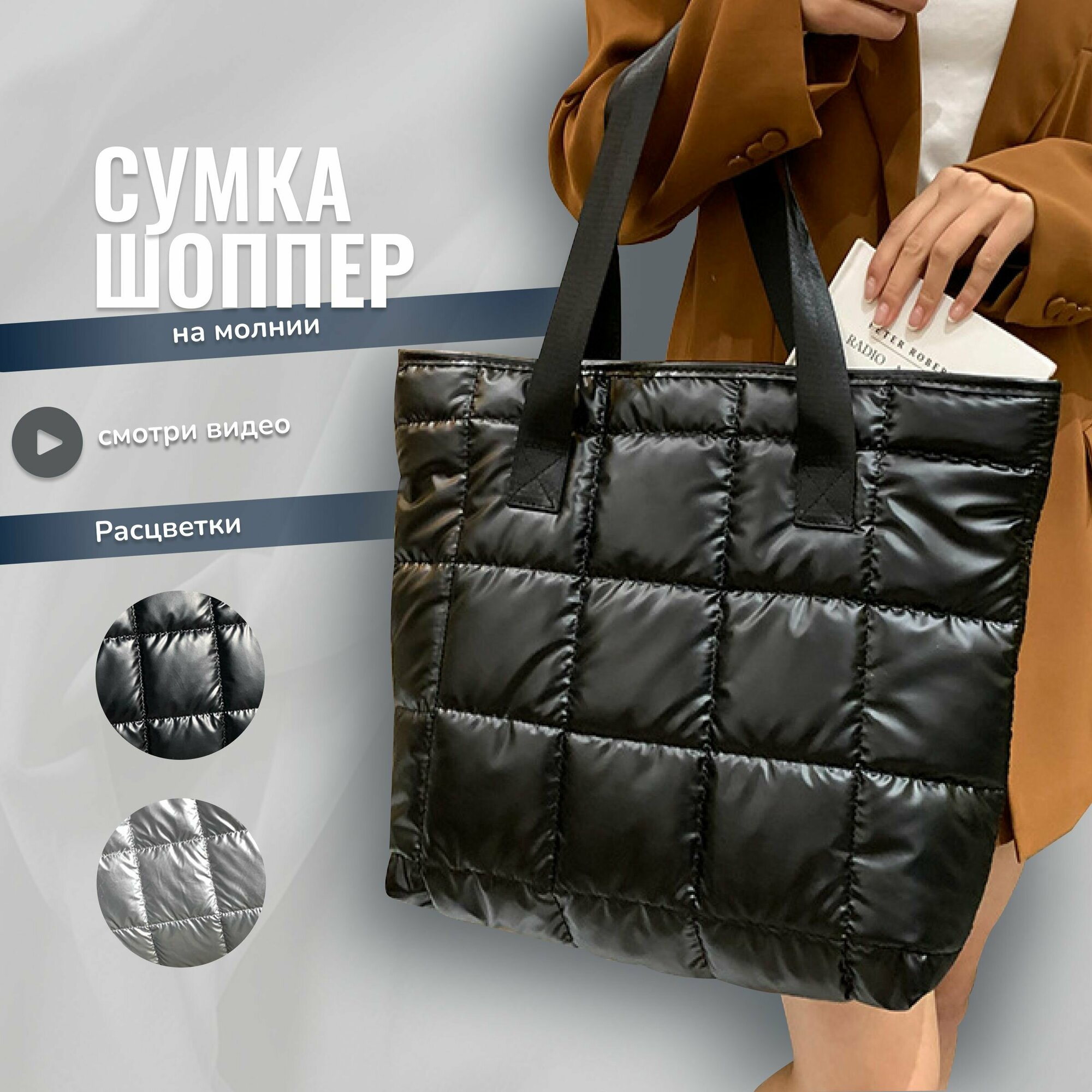 Ниже Вы можете прочитать отзывы на Сумка шоппер на плечо болоньевая стеганая, цвет черный, ознакомится с подробными характеристиками, посмотреть интересные обзоры и фотографии на Сумка шоппер на плечо болоньевая стеганая, цвет черный.