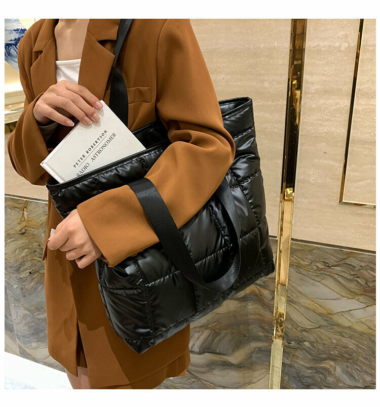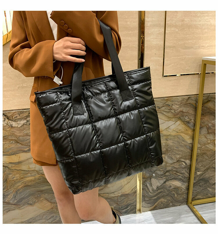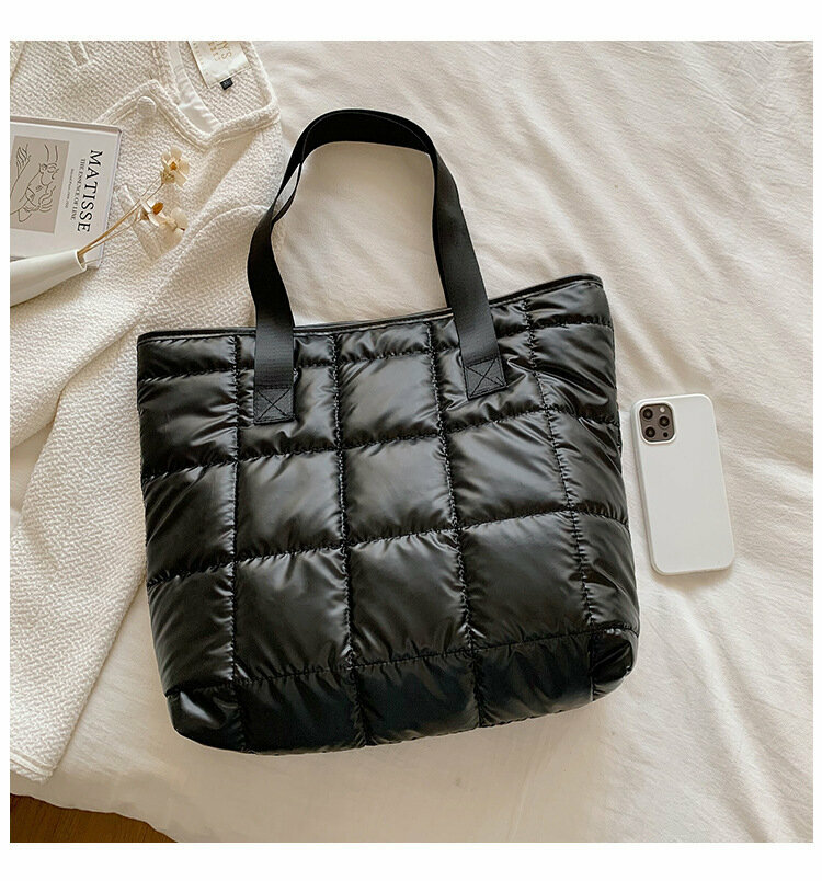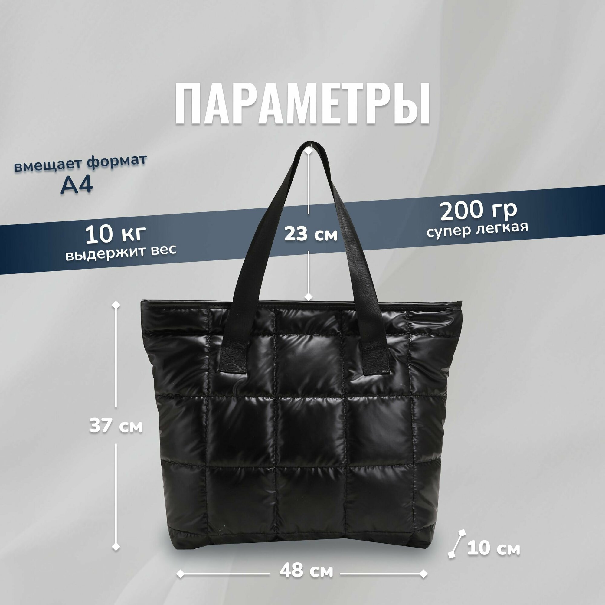 Сумка шоппер на плечо болоньевая стеганая, цвет черный интересное: