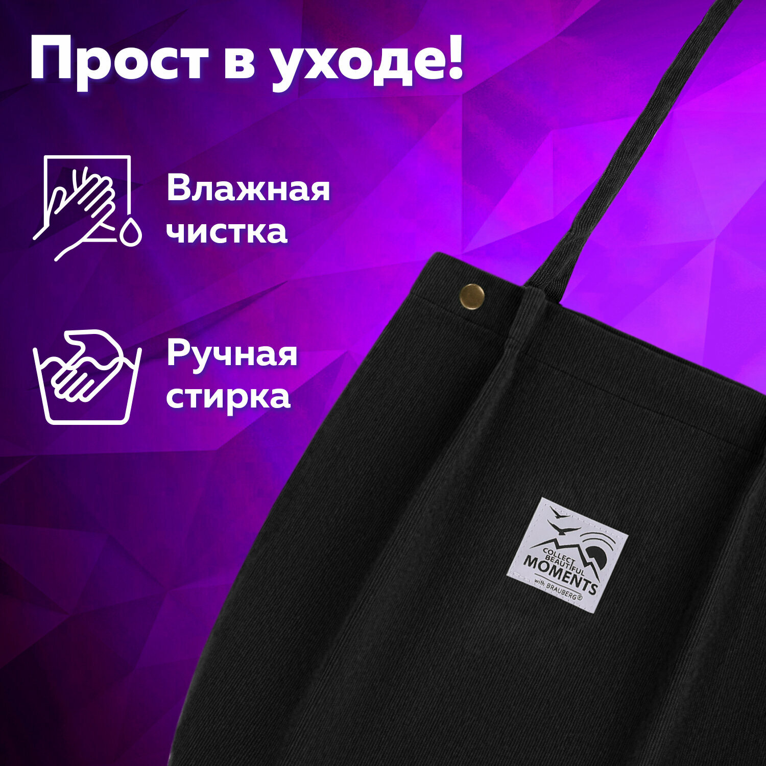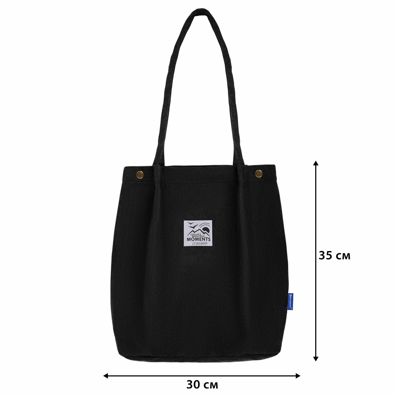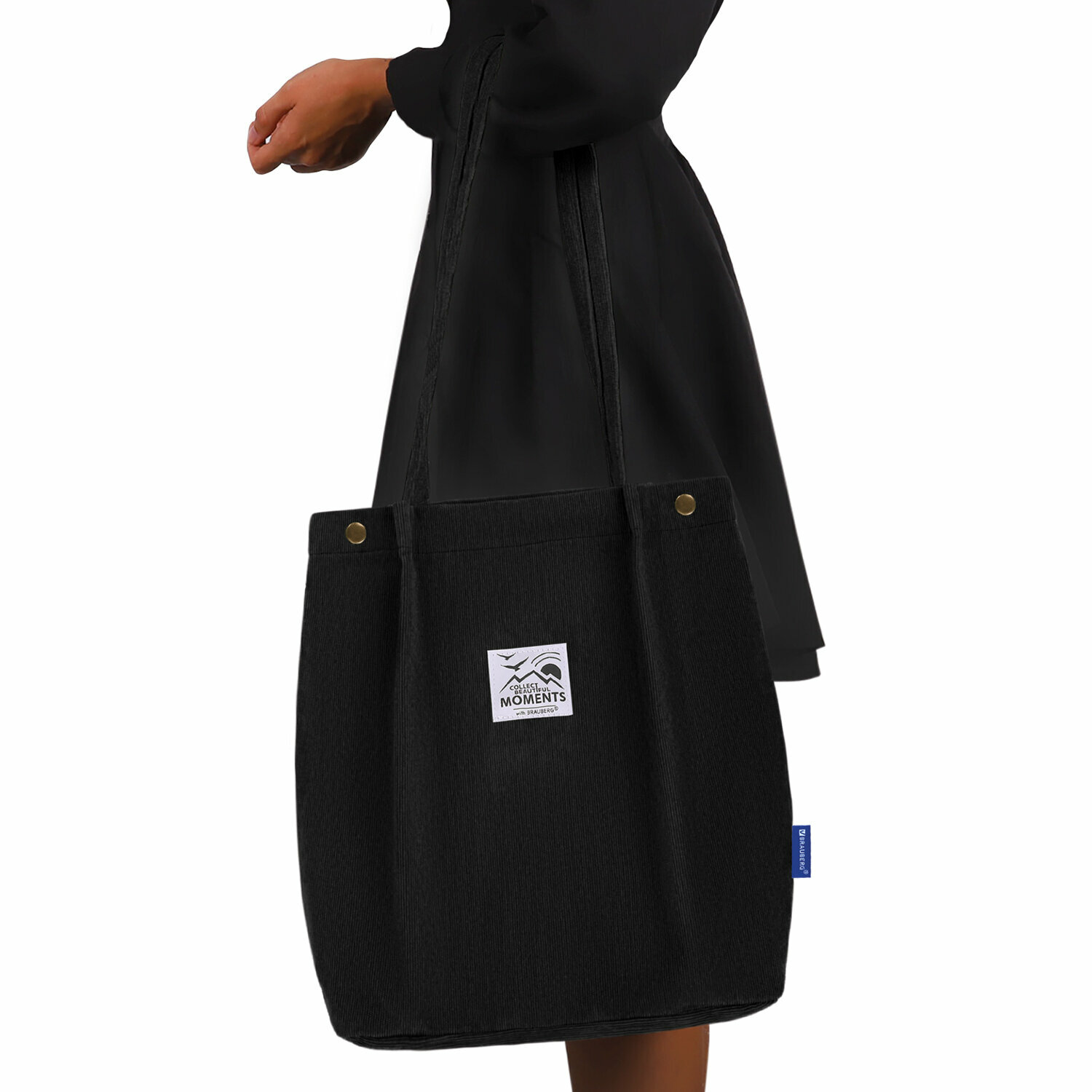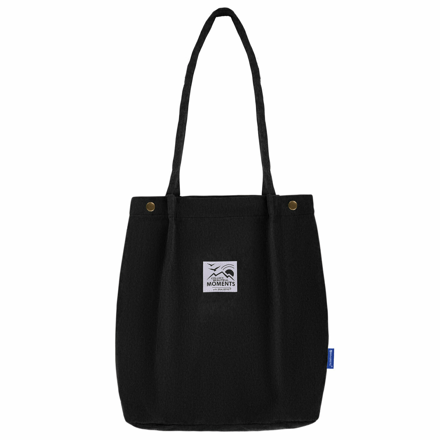 Сумка шоппер женская через плечо, шопер на кнопке с карманом Brauberg Moments, вельвет, черная, 271905 интересное: