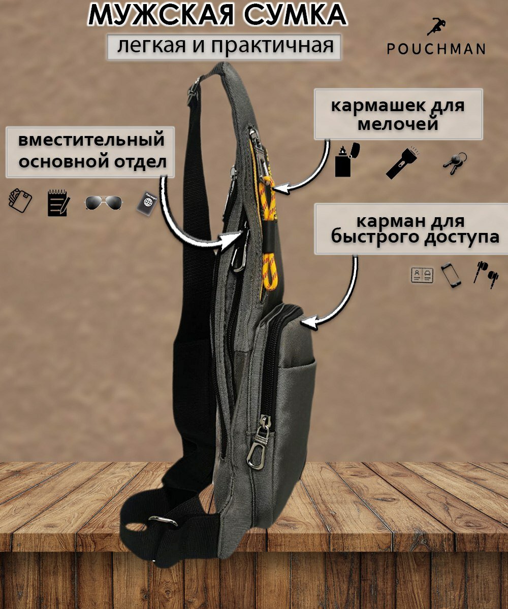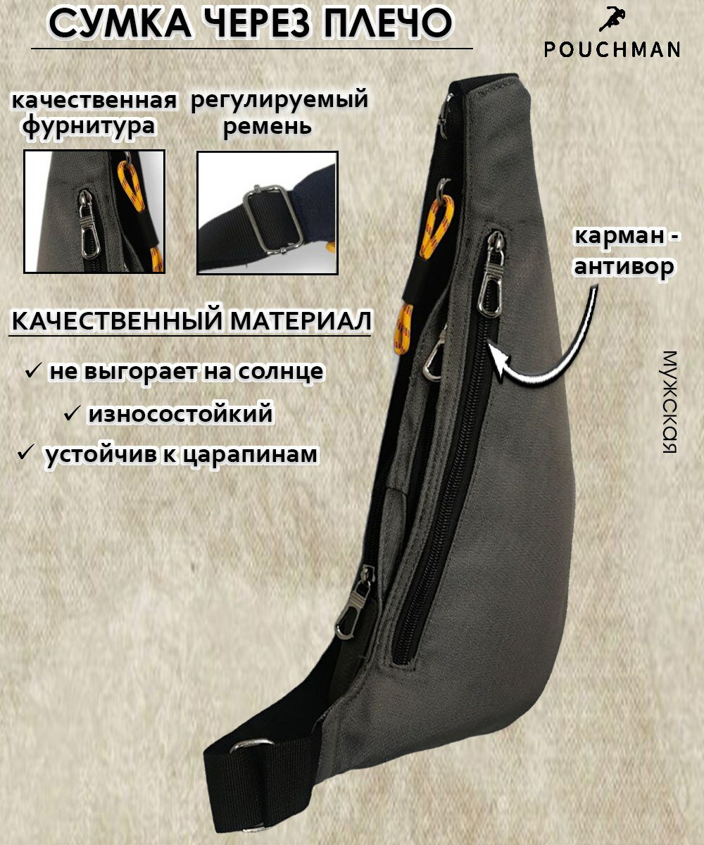 Нагрудная сумка-рюкзак текстильная PouchMan, однолямочный, мужской, женский, через плечо, кобура, тканевая, слинг
