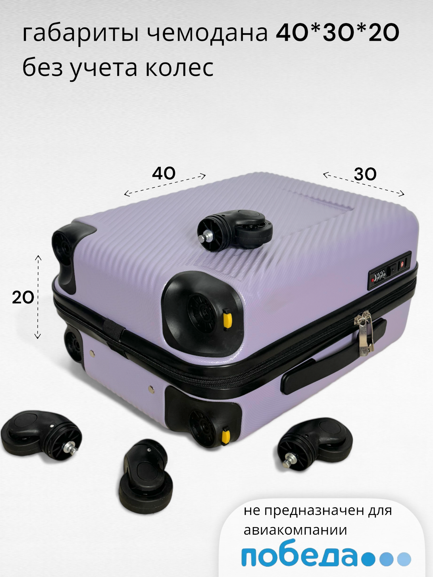 Купить Чемодан на колесах Ручная кладь 40х30х20 лаванда