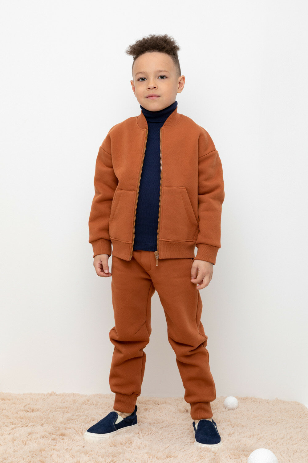 Брюки для мальчика из футера с начесом, Crockid КР 400603/ореховый к416 р 60/116