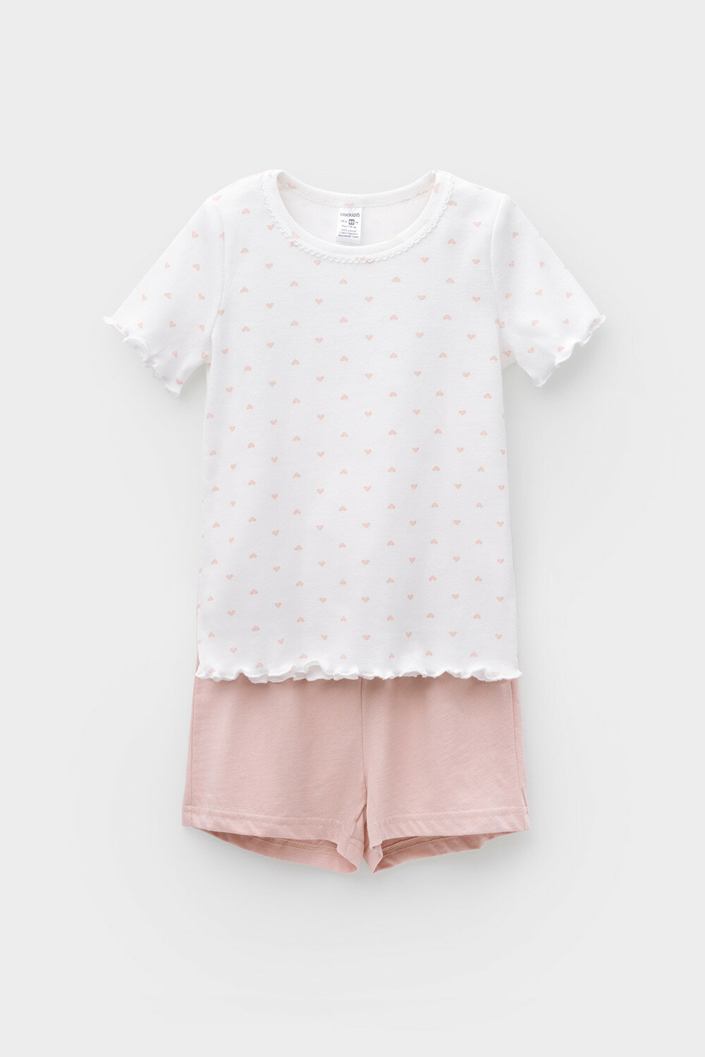 Пижама crockid К 1596/сердечки на сахаре,дымчатая роза, размер 68/134, розовый, белый