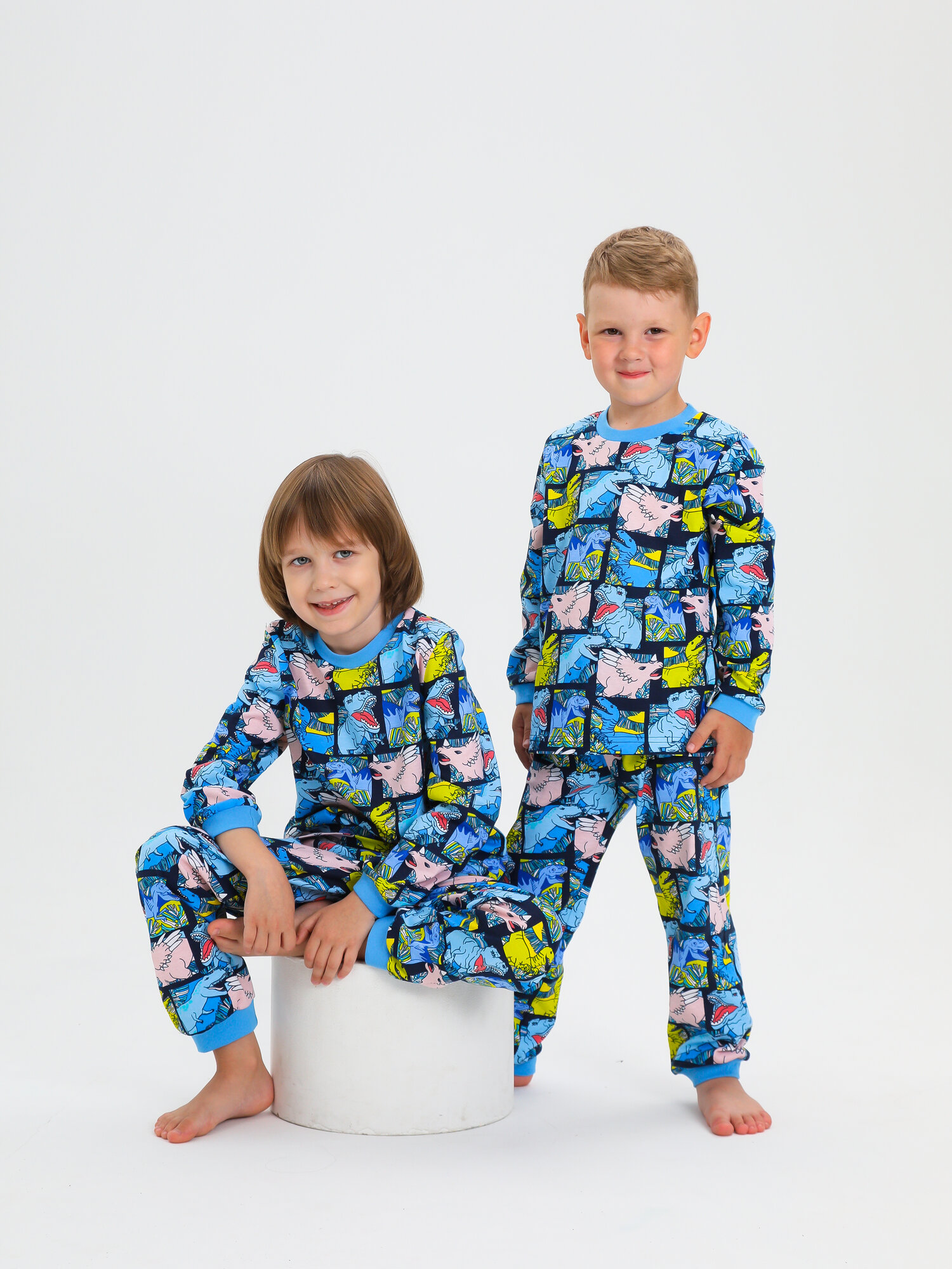 Пижама Веселый малыш, размер 110, голубой, 93/17/Dinosaur