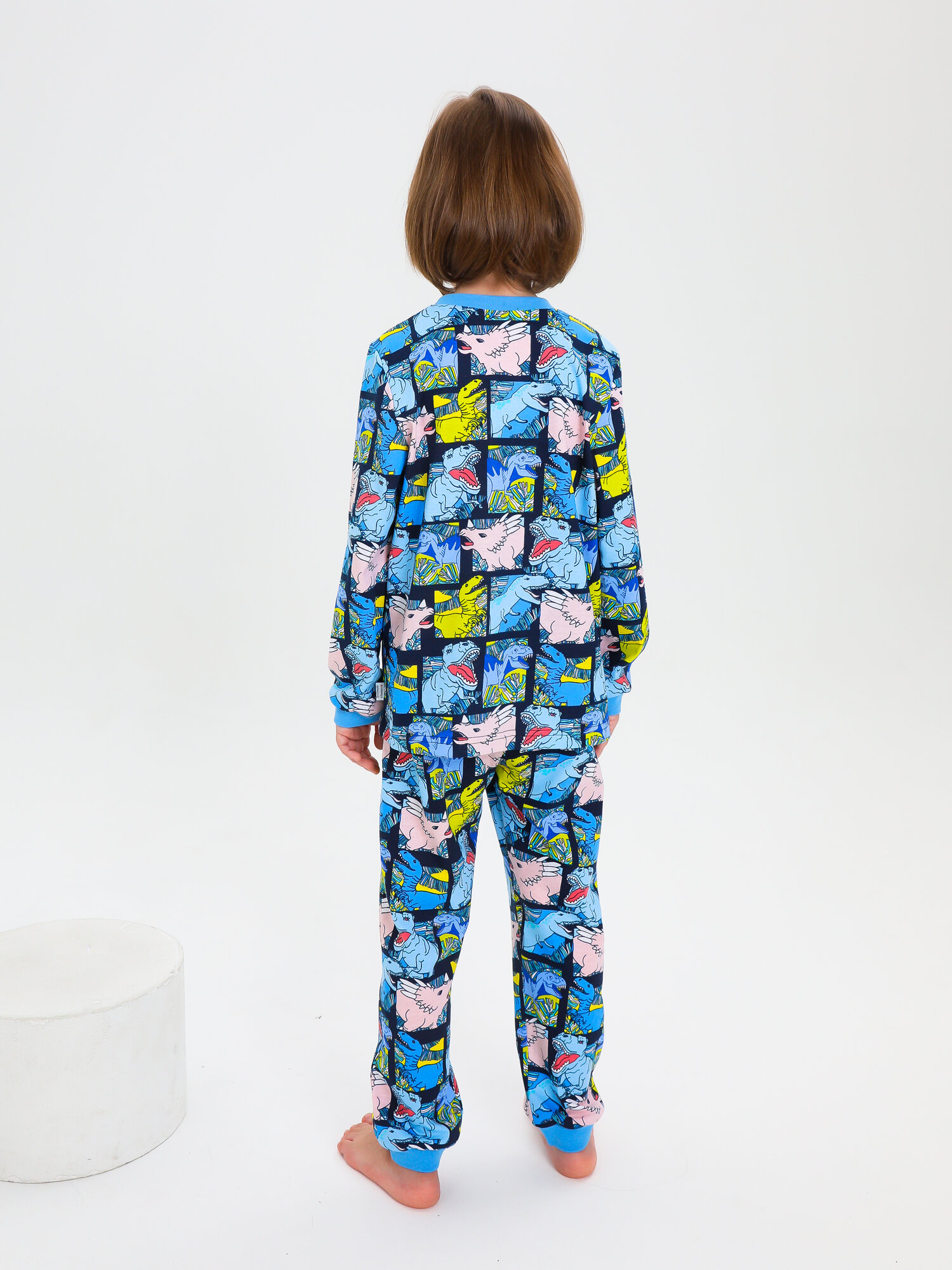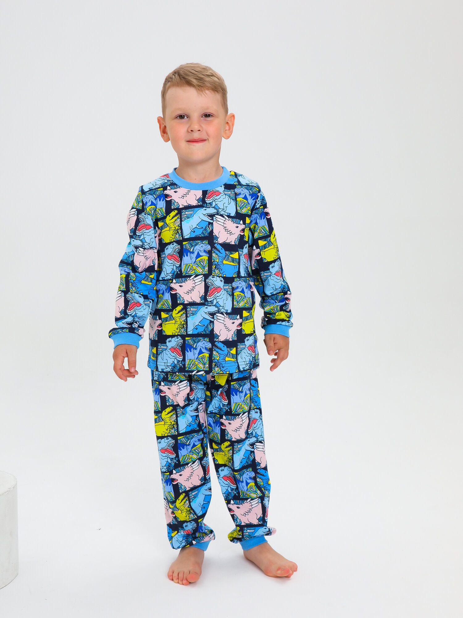 Пижама Веселый малыш, размер 128, голубой, 93/17/Dinosaur
