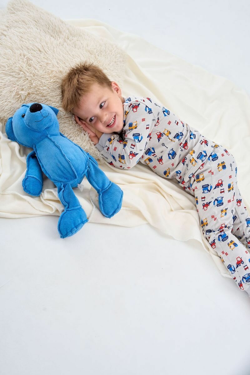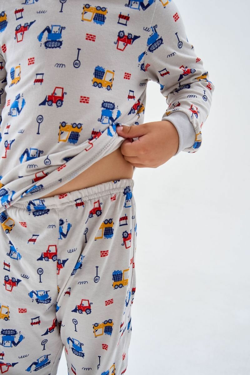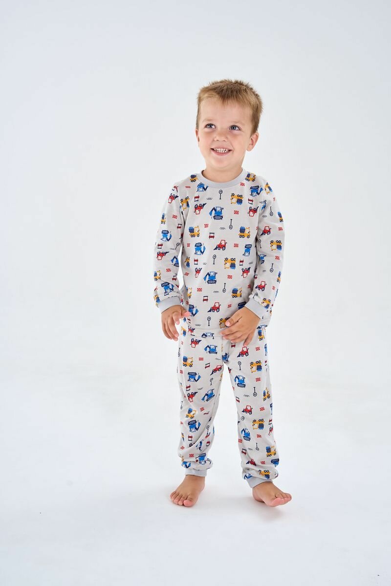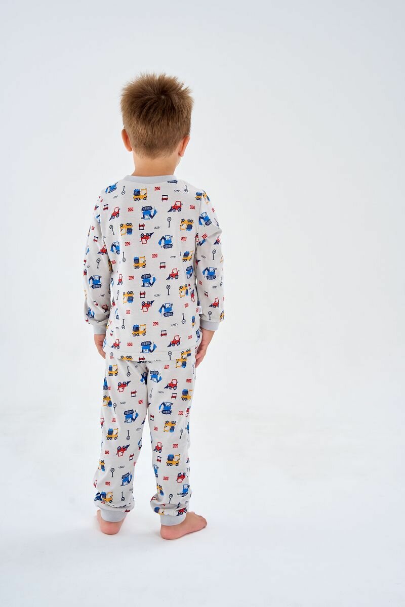 Пижама Веселый Малыш Маленький строитель, размер 80, синий, желтый, красный, серый
