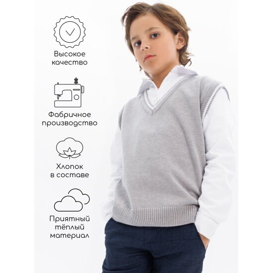 Купить Жилет Amarobaby Pure Love School New, вязаный, серый, размер 122-128
