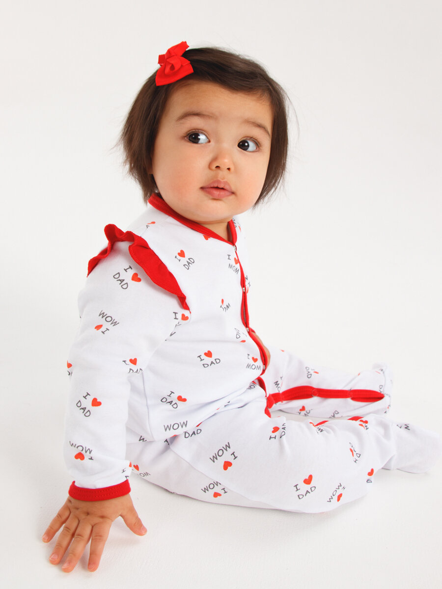 Комбинезон КотМарКот Love, закрытая стопа, размер 80, белый-красный