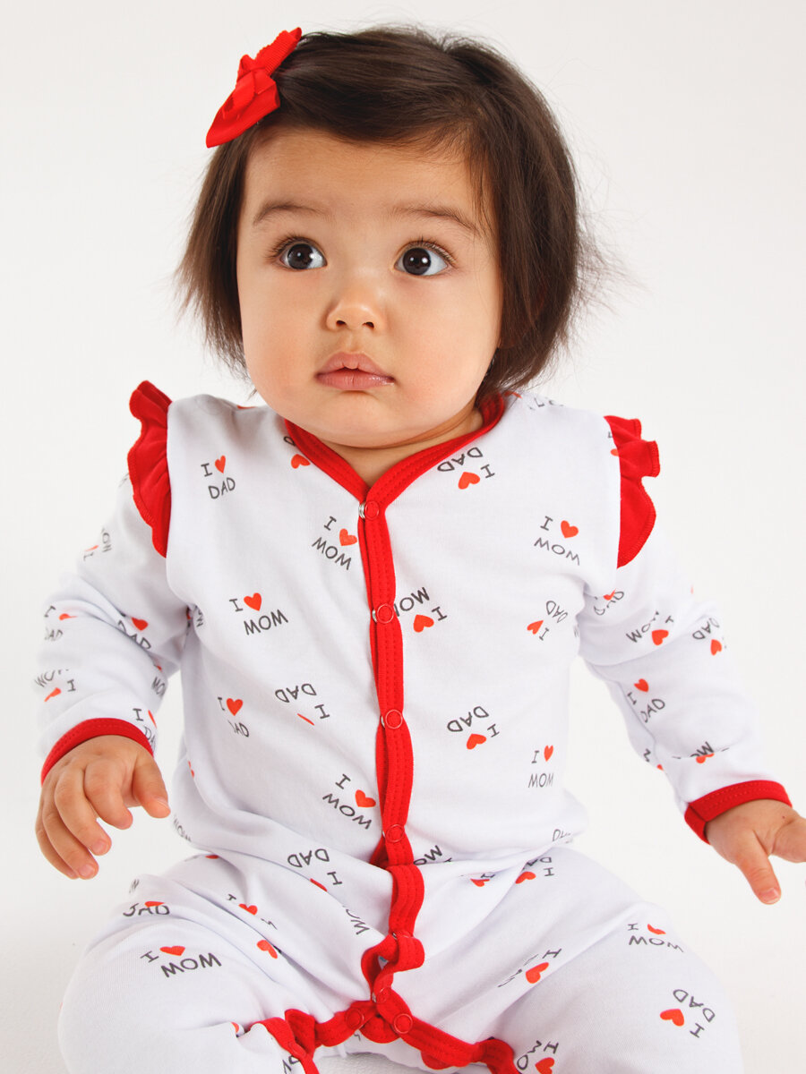 Комбинезон КотМарКот Love, закрытая стопа, размер 62, белый-красный