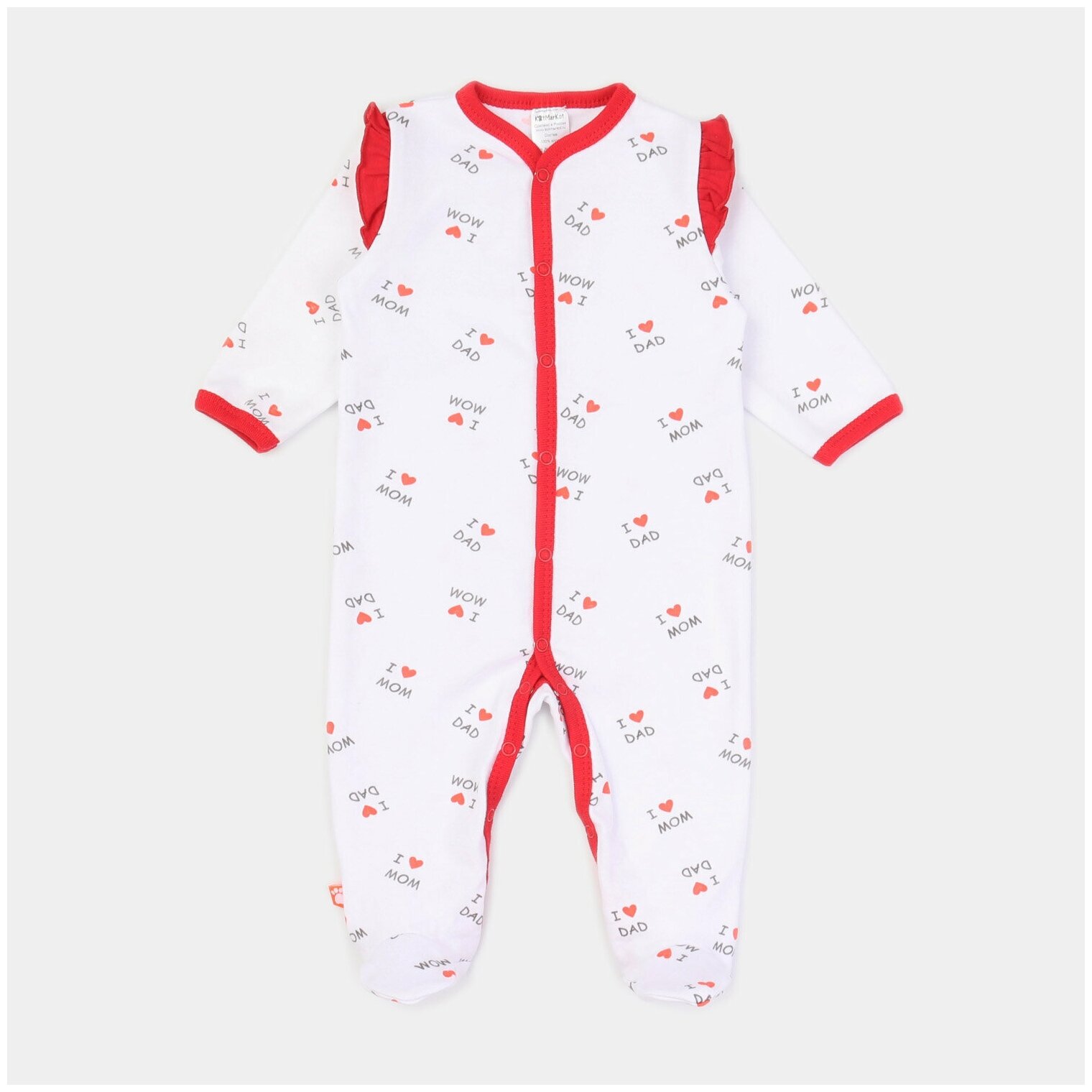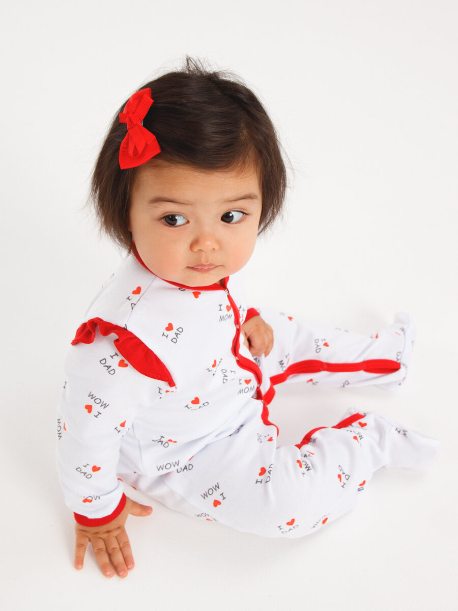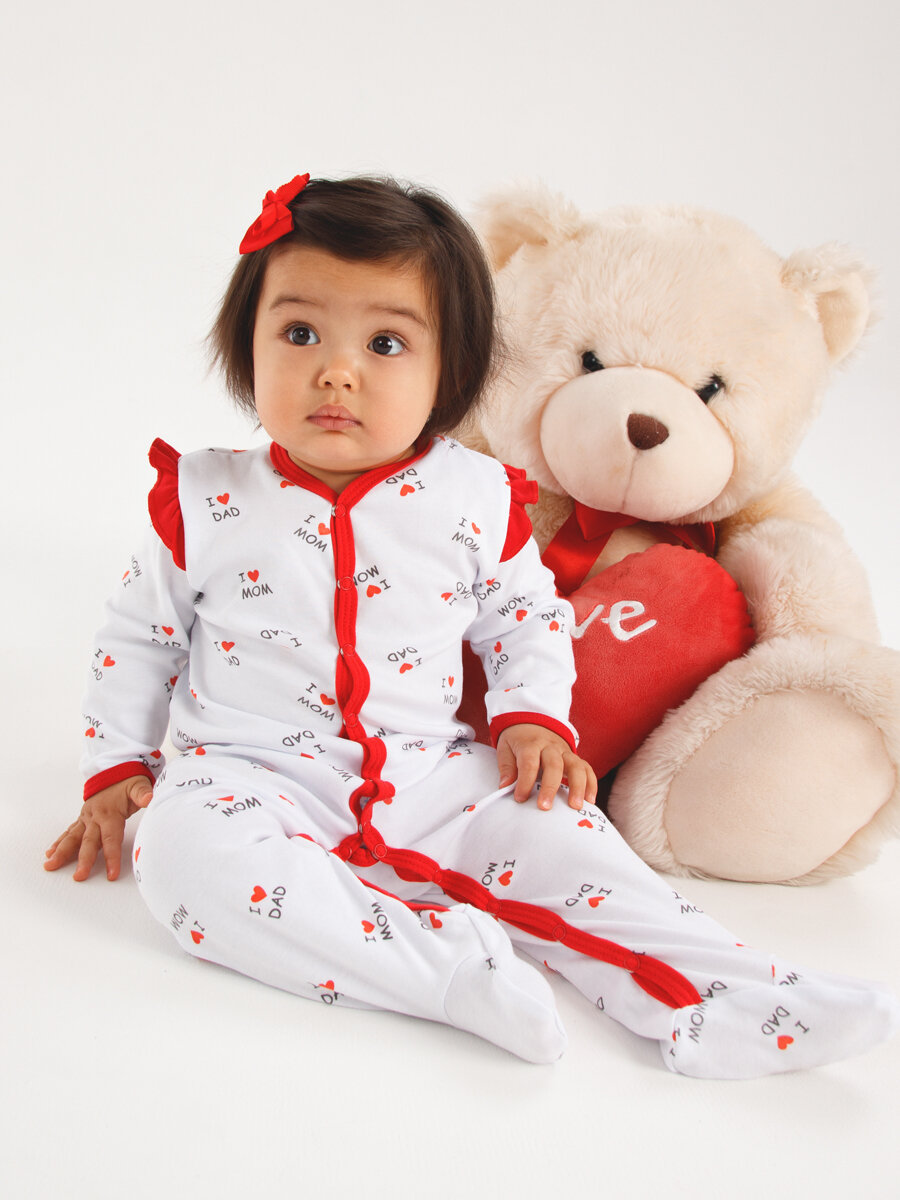 Комбинезон КотМарКот Love, закрытая стопа, размер 80, белый-красный