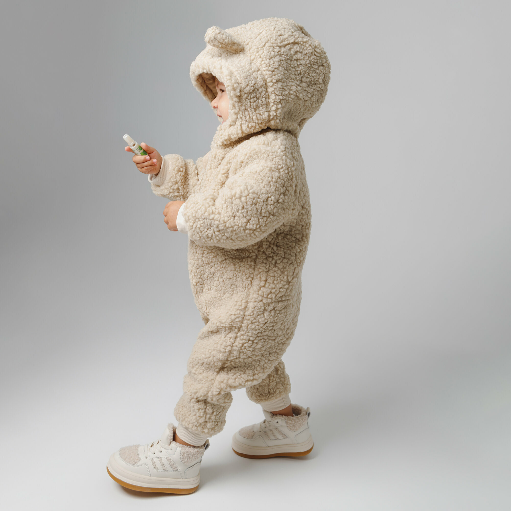 Комбинезон плюшевый с ушками мишки детский Amarobaby Plush, молочный, размер 86