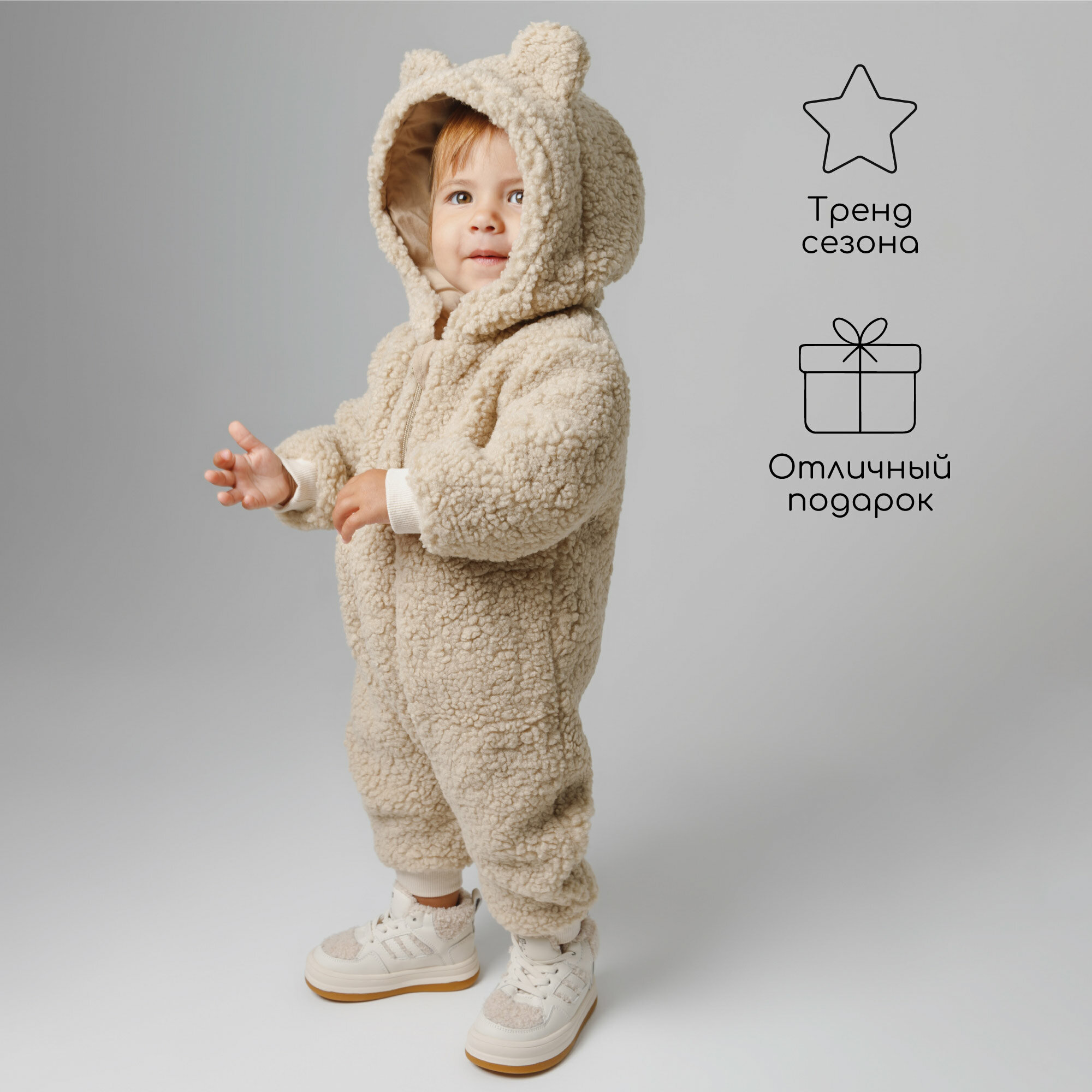 СохранитьКомбинезон плюшевый с ушками мишки детский Amarobaby Plush, молочный, размер 80 интересное: